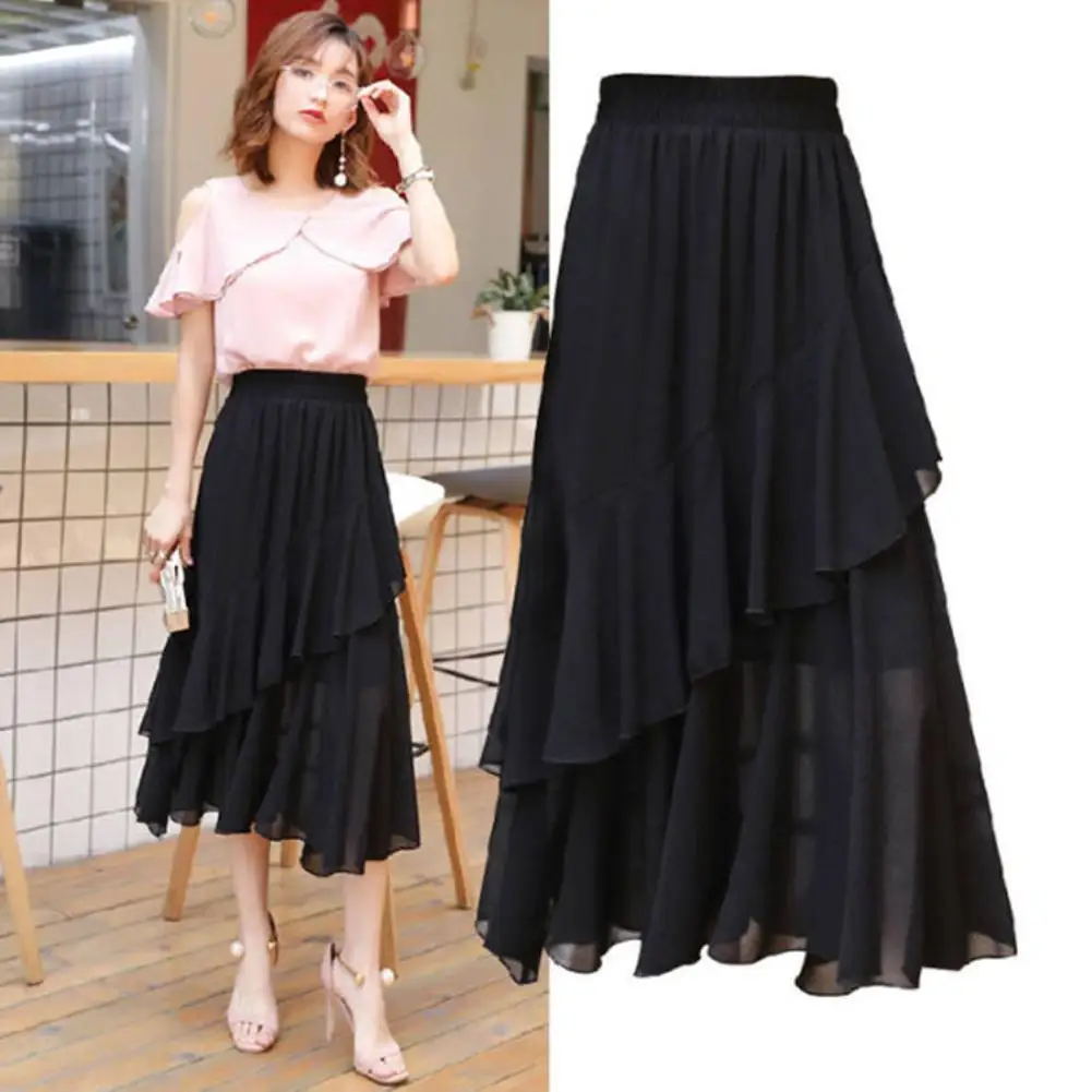 Модная Женская эластичная юбка средней длины с завышенной талией трапециевидной формы и асимметричным подолом