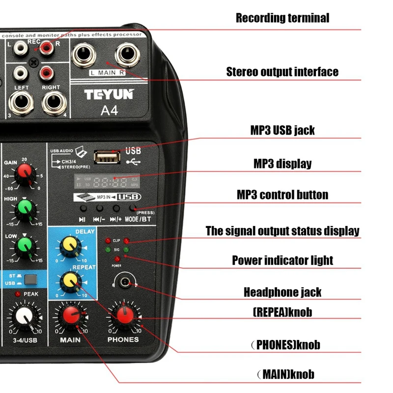 Tu04 Bt 4-канальный микшерный пульт для записи звука 48 В фантомный монитор питания Aux Paths Plus эффекты аудио Миксер с Usb кабелем Eu Pl
