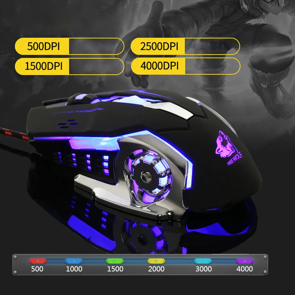 Проводной светодиодный светильник 4000DPI оптическая Usb эргономичная профессиональная игровая мышь металлическая пластина