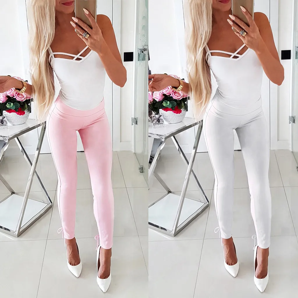 Для женщин Повседневное и штаны комплект летней одежды Однотонные штаны; Спортивные штаны