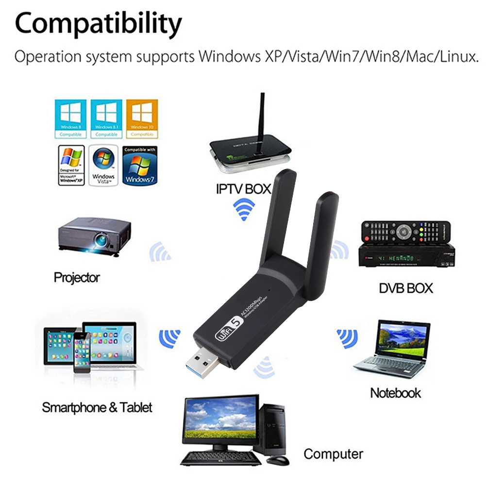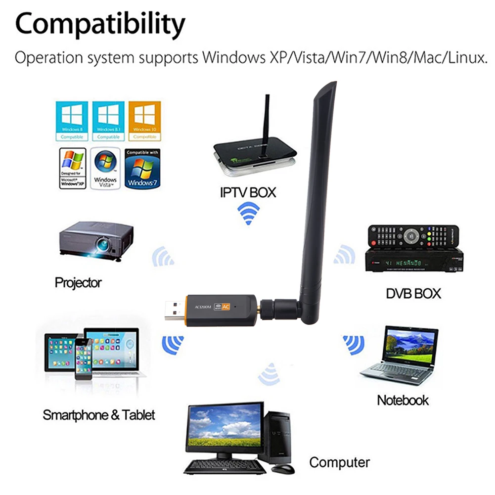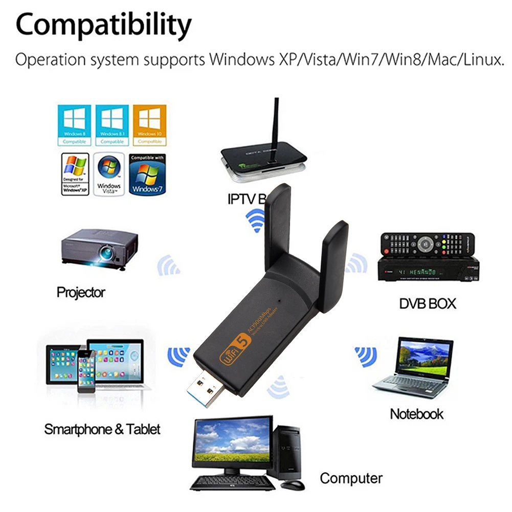 -Этот wifi адаптер WLAN поставляется с разъемом USB Type A, он поддерживает интерфейс стандартов USB2.0.