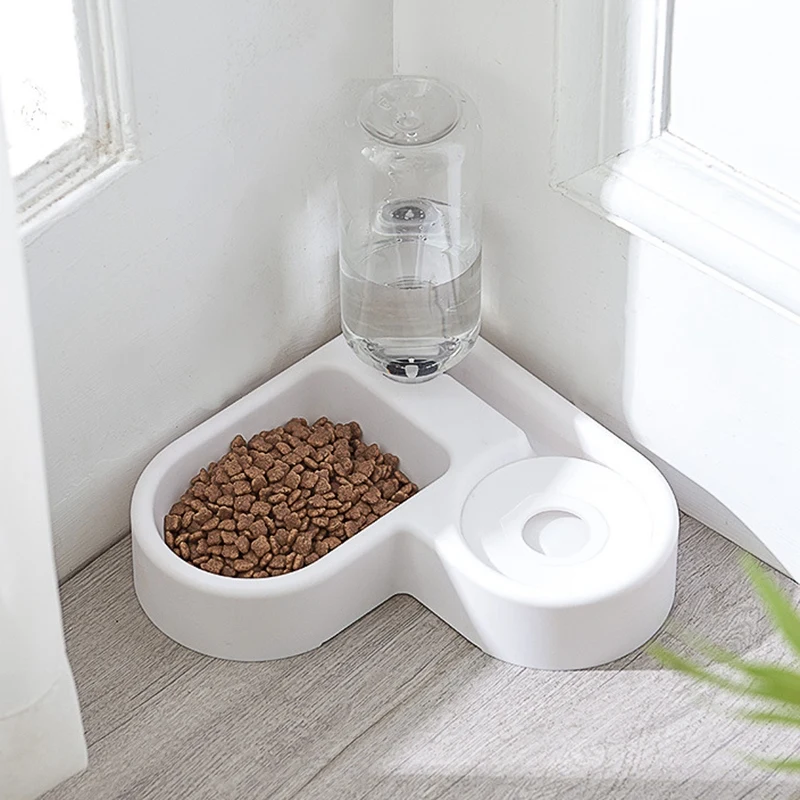 Кормушка для домашних животных, автоматические двойные миски для воды, угол для еды, экономия места, 500 мл, бутылка для питья, товары для кошек и собак