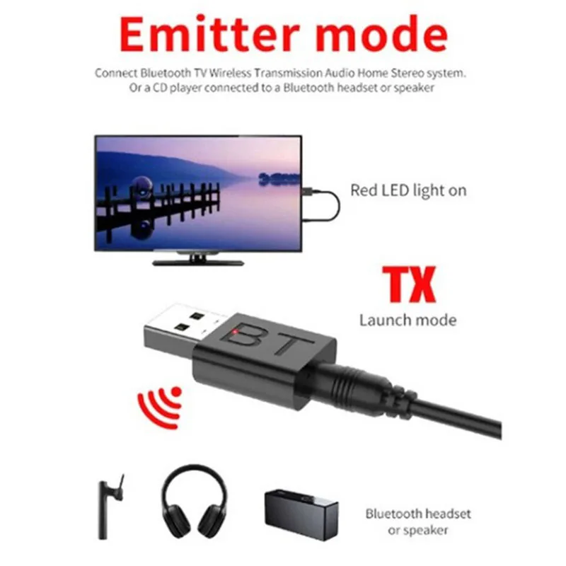 1. Адаптер Bluetooth 5,0: высокая совместимость, подходит для телевизора, компьютера, гарнитуры, мыши и клавиатуры, подходит для домашнего аудио и видео, автомобиля, офиса и других сцен