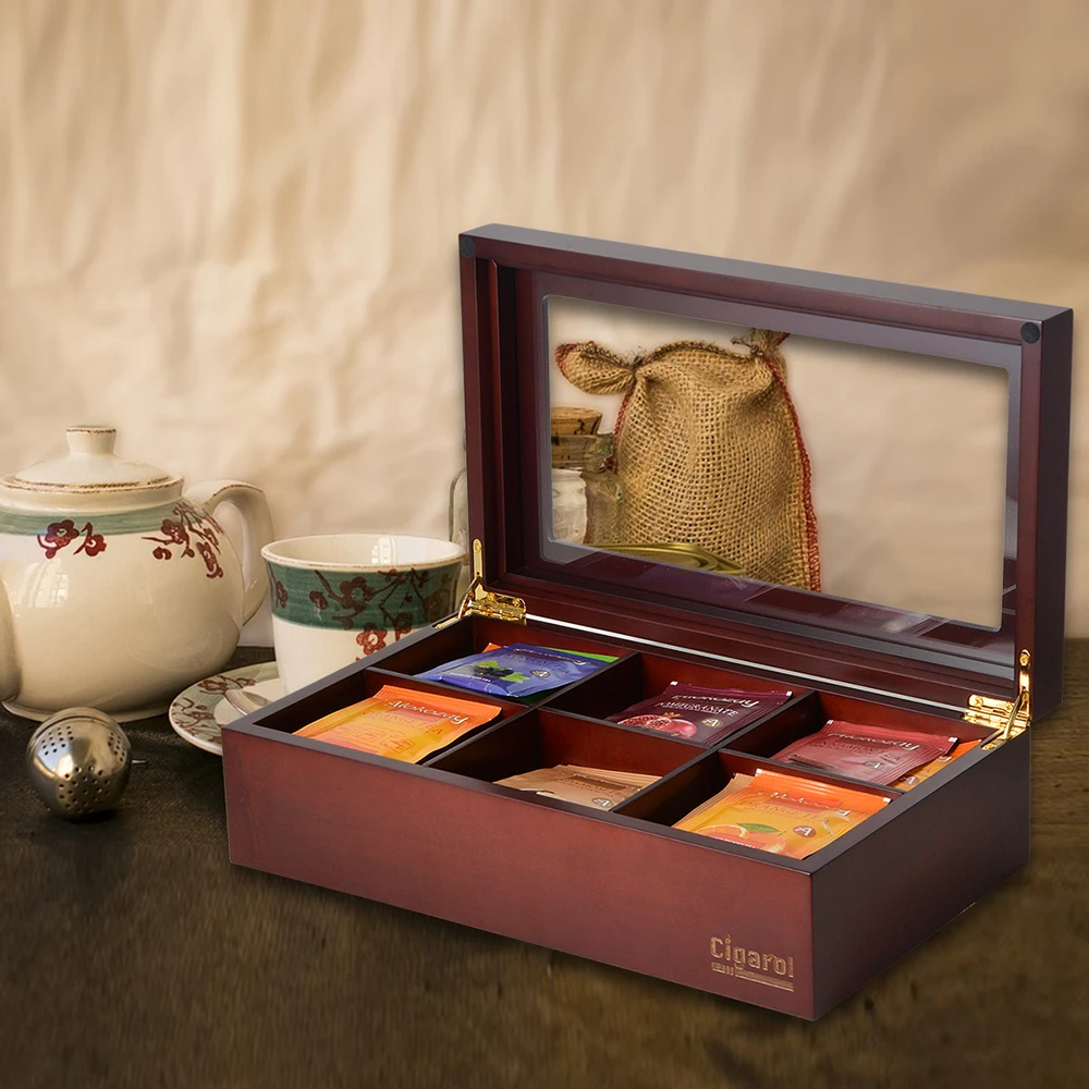 6 отсеков Чай коробка чистый Органайзер Кофе Чай пакеты из-под молока контейнер роскошная коробка для хранения Анти-пыль защитный Кухня инструменты