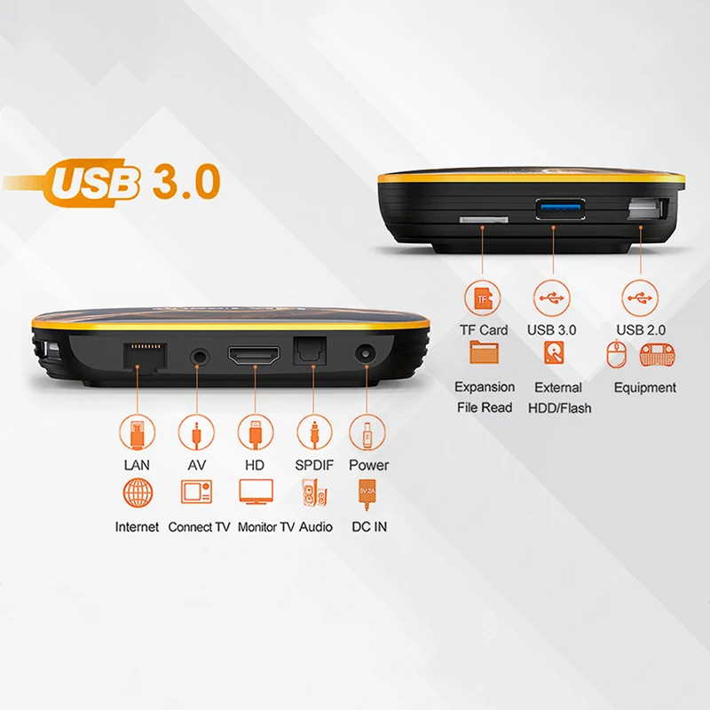 Поддержка формата декодера: 4K VP9 видео декодер, H.265/H.264 видео декодер, 1080P другие декодеры видео (VC-1, MPEG-1/2/4, VP6/8), поддержка медиа формата Avi/Ts/Vob/Mkv/Mov/ISO/wmv/asf/flv/dat/mpg/mpeg, поддержка музыкального формата MP3/WMA/AAC/WAV/OGG/DDP/HD/FLAC/APE, поддержка формата фото HD JPEG/BMP/GIF/PNG/TIFF,HDR :HDR10 и HLG режимы, USB хост: 1 Высокоскоростной USB 3,0 3 USB 2,0, кард-ридер: TF карты, HDD файловая система: FAT16/FAT32/NTFS