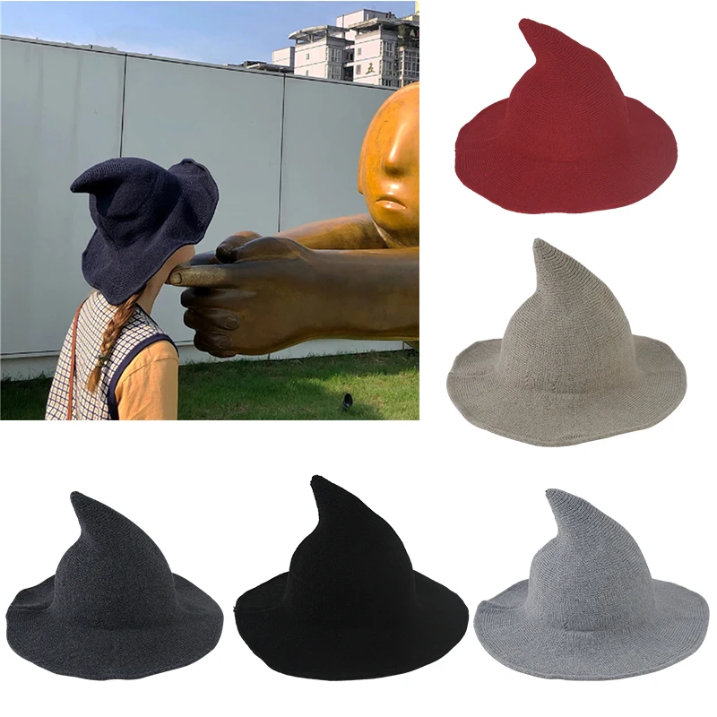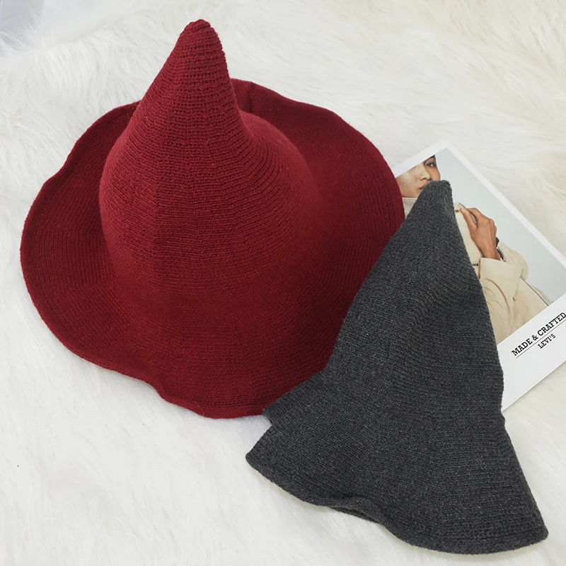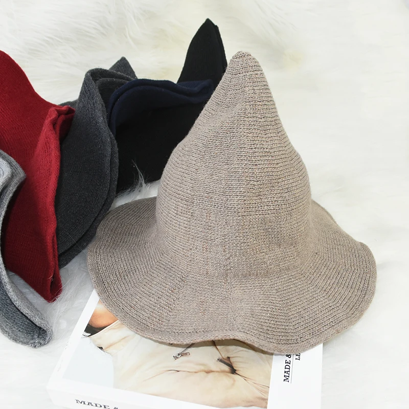1 шт., шерстяная женская шляпа ведьмы на Хэллоуин, вечерние головные уборы для Хэллоуина, складная теплая осенне-зимняя шапка, модная шапка для девочек