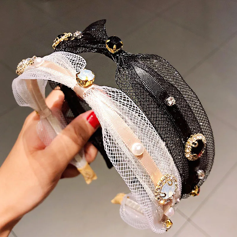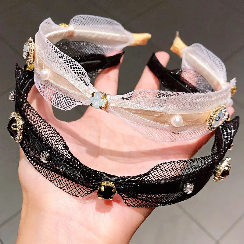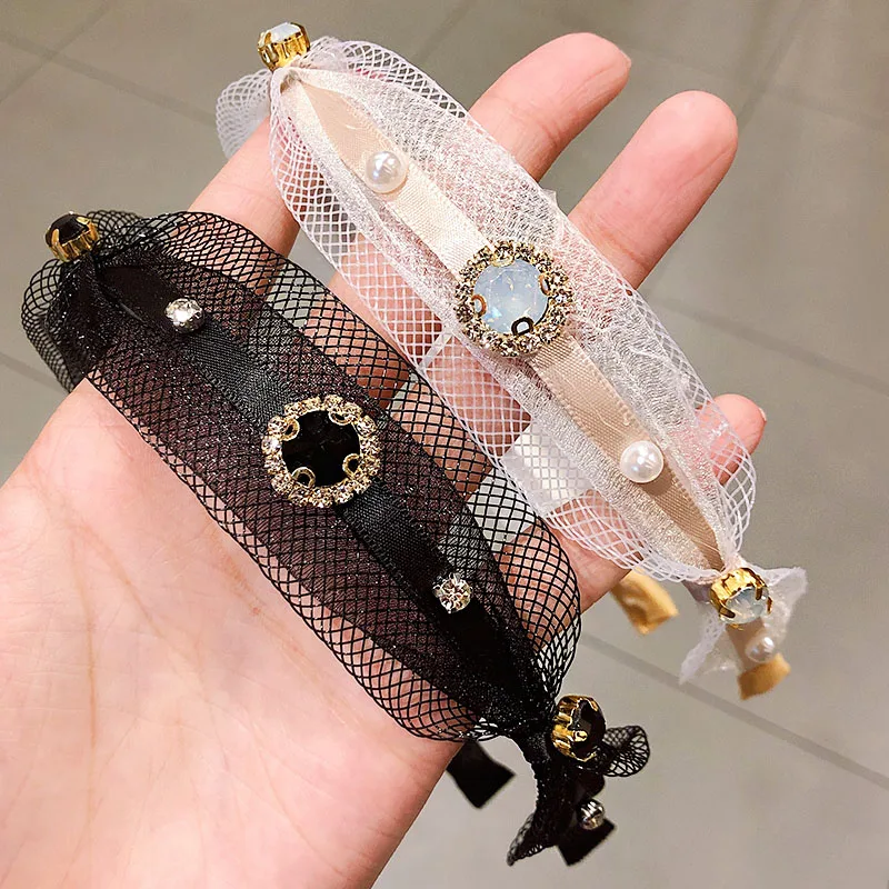 Новые женские элегантные кружевные белые черные простые резинки для волос, украшение ободок для волос, женские модные аксессуары для волос