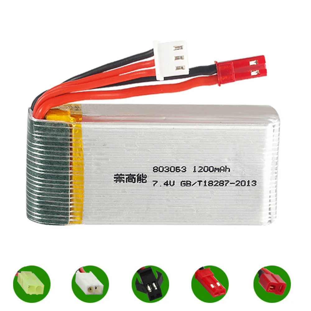 7,4 в 1200 мАч 803063 литий-полимерный аккумулятор для экшн камеры Yi Чжан X6 H16 MJX X101 X102 Квадрокоптер с дистанционным управлением Drone 7,4 V 30C 2S игрушка Батарея JST/SM/EL-2P штепсельной вилки