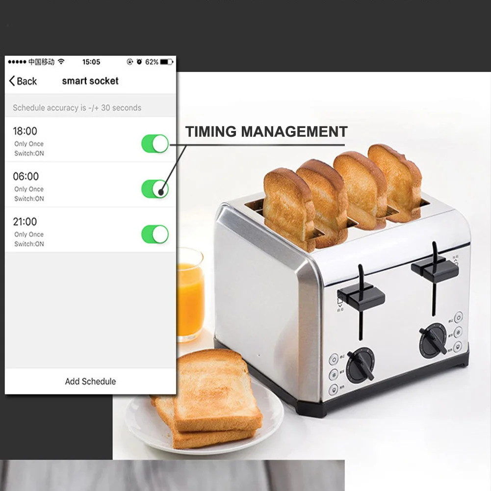 - Two smart sockets can be controlled individually or in groups. Single smart socket can output a maximum load of 15A. When two sockets work simultaneously, it can intelligently distribute current.
