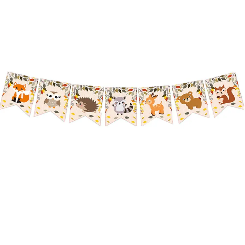 Лесной День Рождения украшения детский плакат сафари джунгли Вечеринка животное баннер Вечеринка Сувениры ребенок день рождения Декор гирлянда