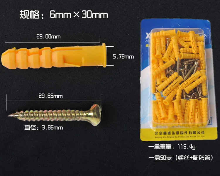 Description50 шт./кор. 6*30 мм специальные внутренние подкладки для Пластик Расширительная трубка трубы анкеры стены Вилки расширения с Phillips головка под ключ