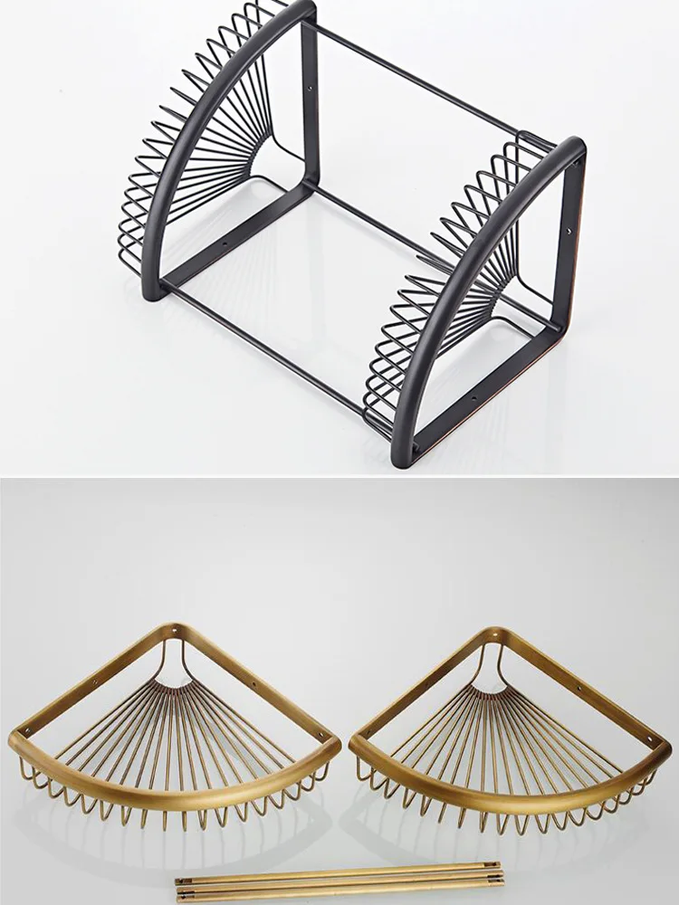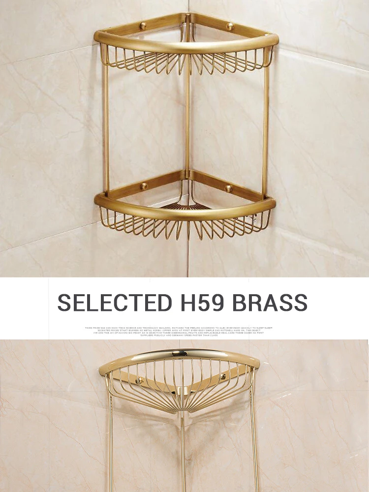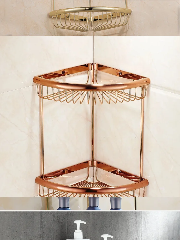 Розовое золото полка для ванной комнаты античная латунь настенное крепление Органайзер двухслойный душевой угловой держатель корзина для ванной полочки для шампуня стойки