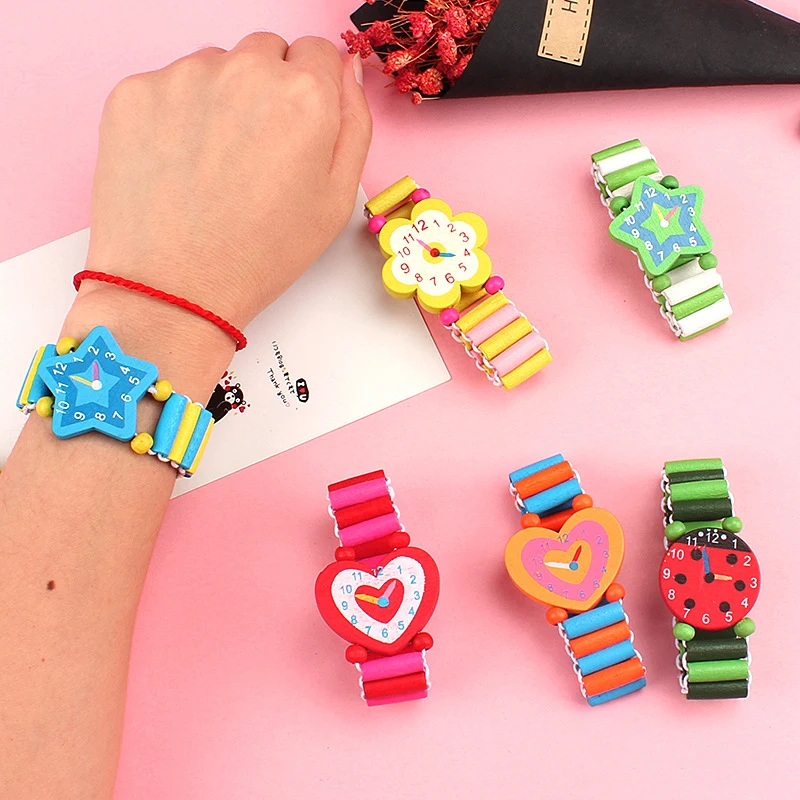 Милые и модные часы с стимуляцией деревянного блеска, цепочка для часов соединена множеством деревянных бусин и может растягиваться, подходящий размер, это хороший подарок для детей