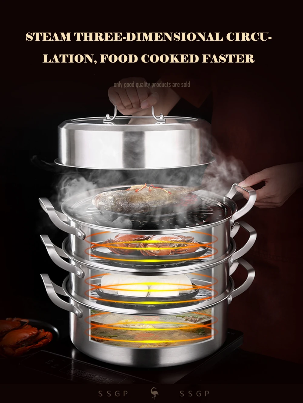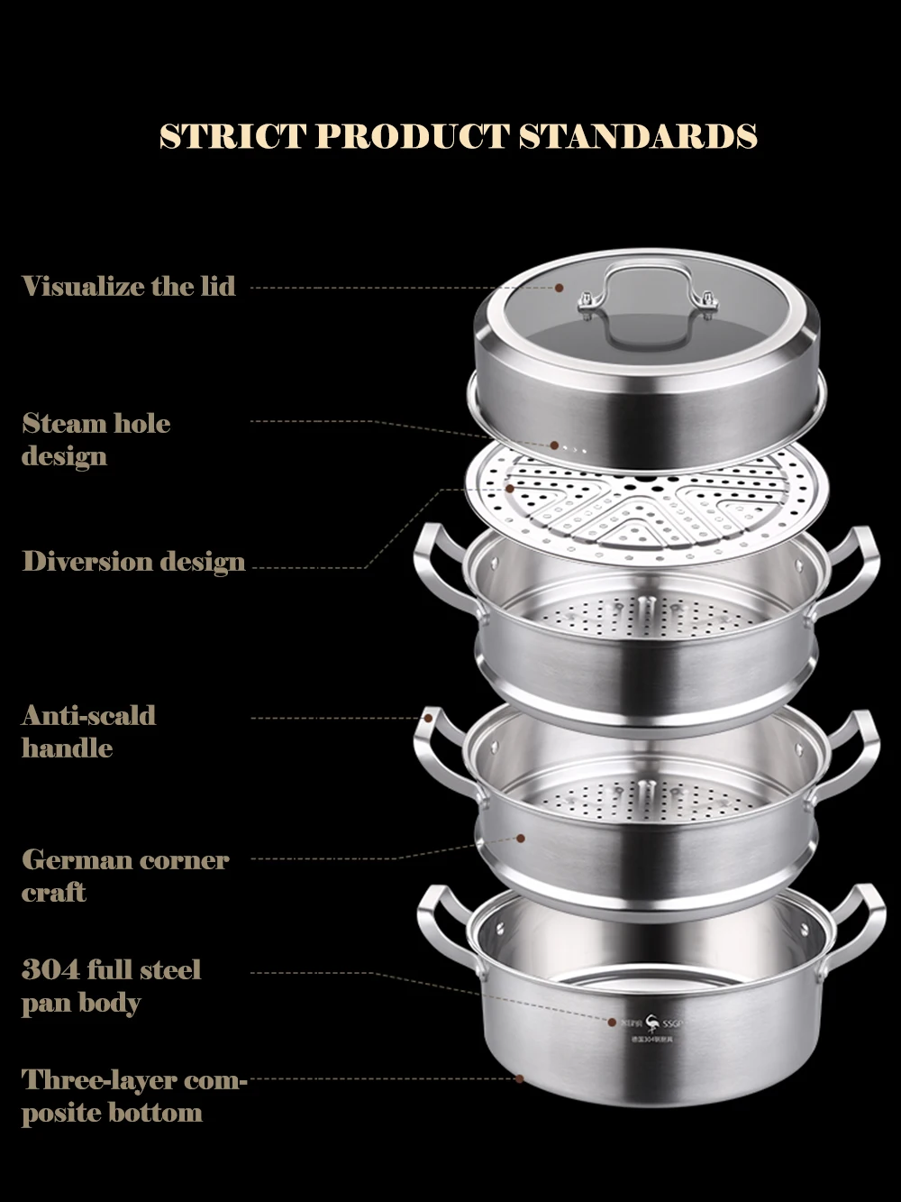 Пароварка 304, кастрюля из нержавеющей стали, домашний горячий горшок, большая емкость 32 см, 3 слоя, Паровая булочка, Паровая Рыбка, кухонная посуда, кухонные инструменты