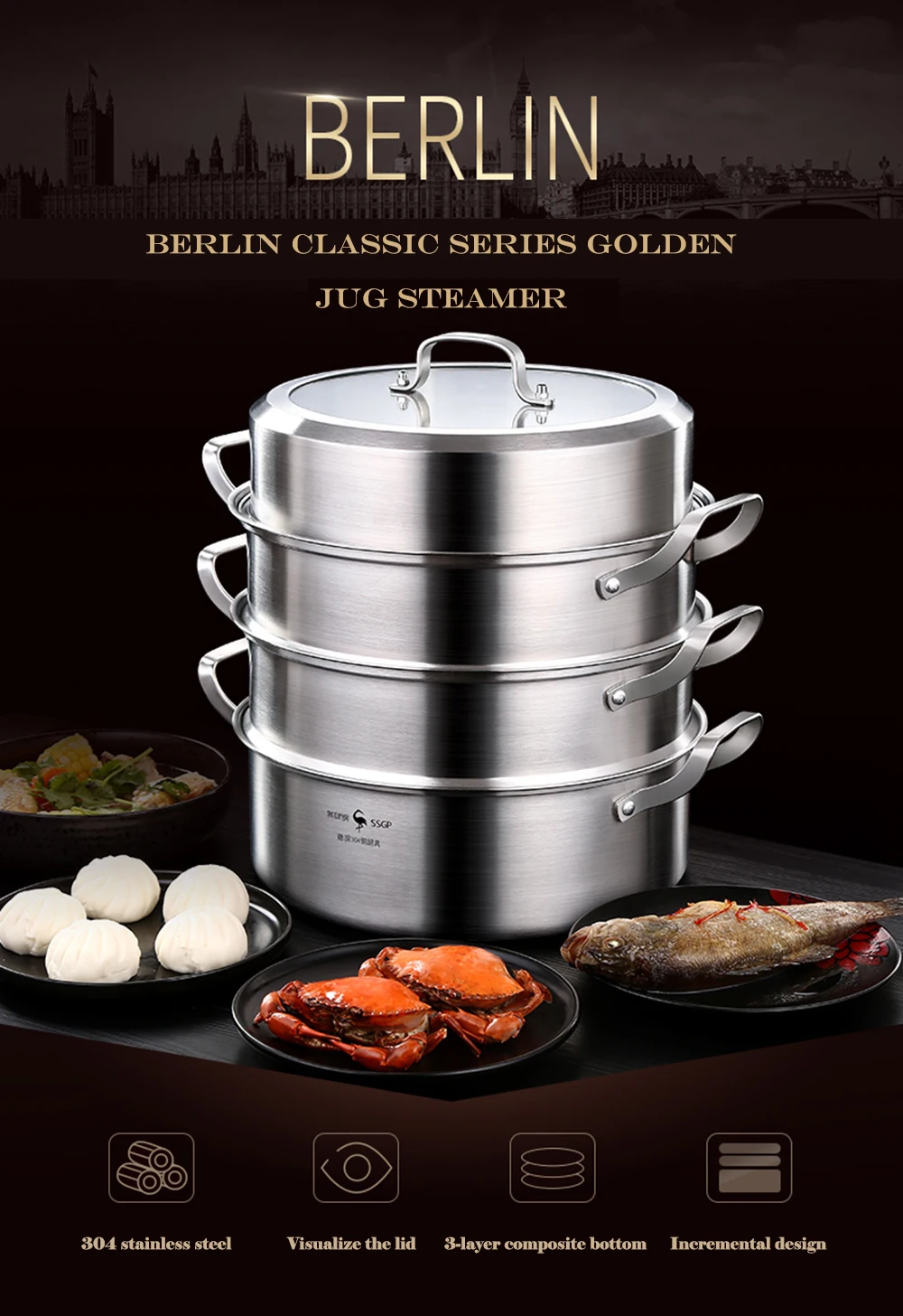 Название продукта: отпариватель SSGP Модель: 03162 Модель: 03162 классический Пароварка Берлина Количество этажей: три этажа Материал: нержавеющая сталь 304 Страна происхождения: Китай (материк) Диаметр: 32 см Тип крышки: видимая крышка Тип подошвы: трехслойное Композитное дно Применимая плита: обычная Объем упаковки: 34 см x 28,5 см x 34 см Вес: 4,0 кг Посылка: 1X пароварка