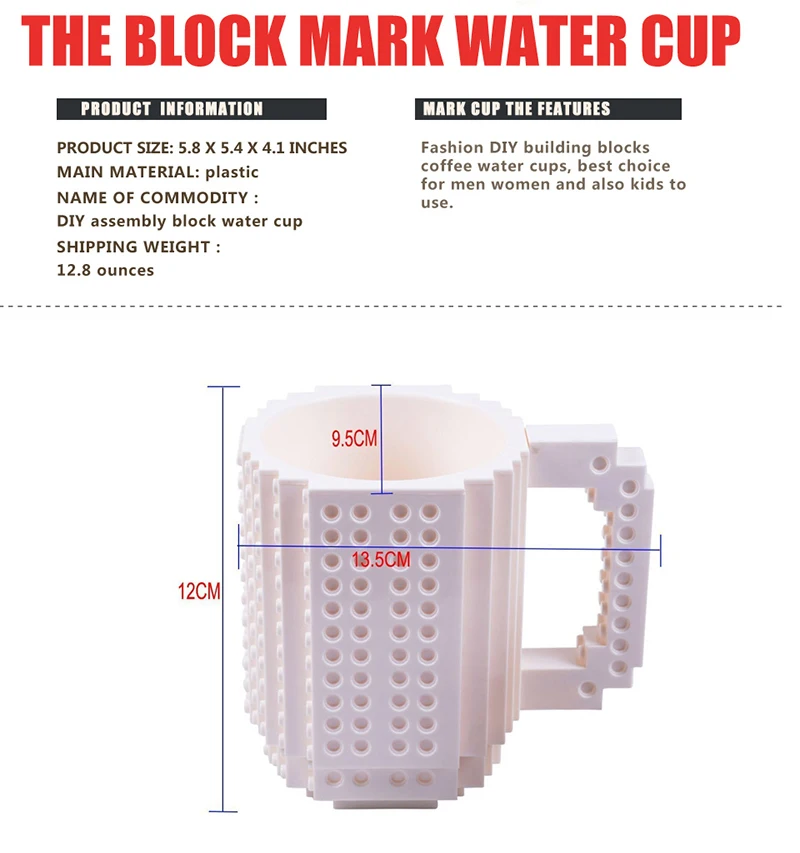 - Название продукта: 350 мл креативная кружка чашка DIY строительный блок кирпич набор головоломка игрушки для детей Молоко Кофе Вода напиток чашки развивающие игрушки подарок