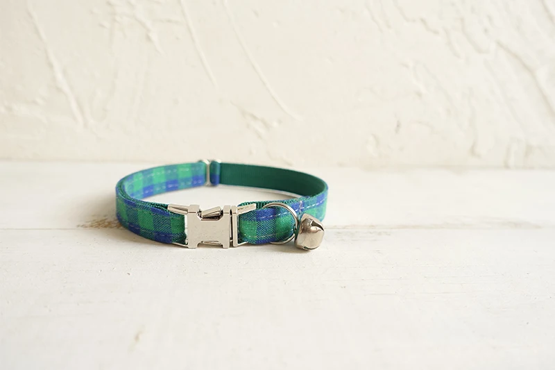 MUTTCO Розничная торговля ручной работы с гравировкой металлическая пряжка воротник кошки он синий зеленый плед мягкий котенок ошейники товары для домашних животных 2 размера uc073