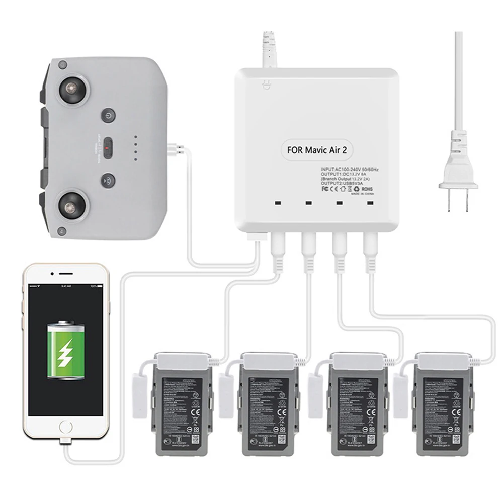 Мини зарядное устройствоЧетыре батареиЗарядный концентраторUSBИнтерфейс fИли DJI MavicAir 2Дрон батареи дистанционного управления мобильный телефонАксессуары