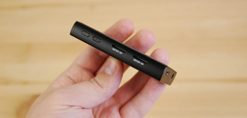 Особенности Размер: 80*45*12 мм Вес: 80 г Источник питания: DC5V Usb-порт 2A/Type-C Время зарядки: 2,5 часа (отключение питания) Последний раз: 15 часов Емкость аккумулятора: 1200 мА Хранение: двойной слот для карты TF Максимальная емкость памяти: 256 ГБ * 2 USB: Type-C (USB2.0) Дополнительная информация: 3,5 мм коаксиальный порт