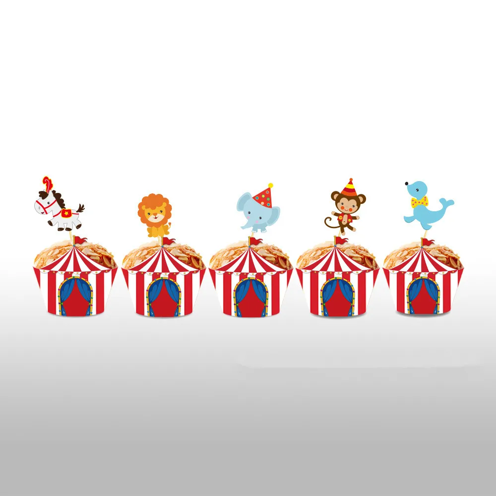Детский душ, Детские сувениры, карнавал, цирк, украшение, торт, кекс, бумажные обертки, Toppers, с днем рождения, товары для вечеринок