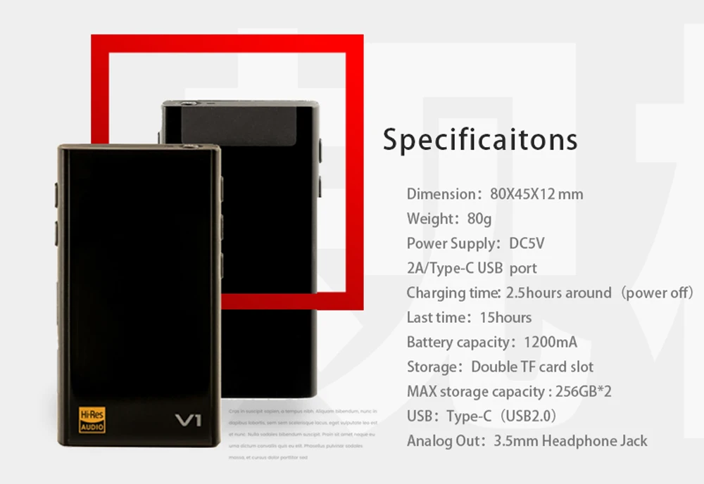 Размер: 80*45*12 мм Вес: 80 г Источник питания: DC5V Usb-порт 2A/Type-C Время зарядки: 2,5 часа (отключение питания) Последний раз: 15 часов Емкость аккумулятора: 1200ма Хранение: двойной слот для карты TF Максимальная емкость памяти: 256 ГБ * 2 USB: Type-C (USB2.0) Аналоговый выход: 3,5 мм разъем для наушников