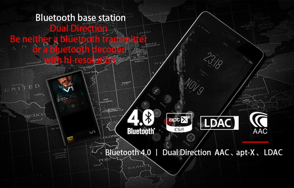 Bluetooth 4,0, двойное направление AAC, АТР-х, LDAC