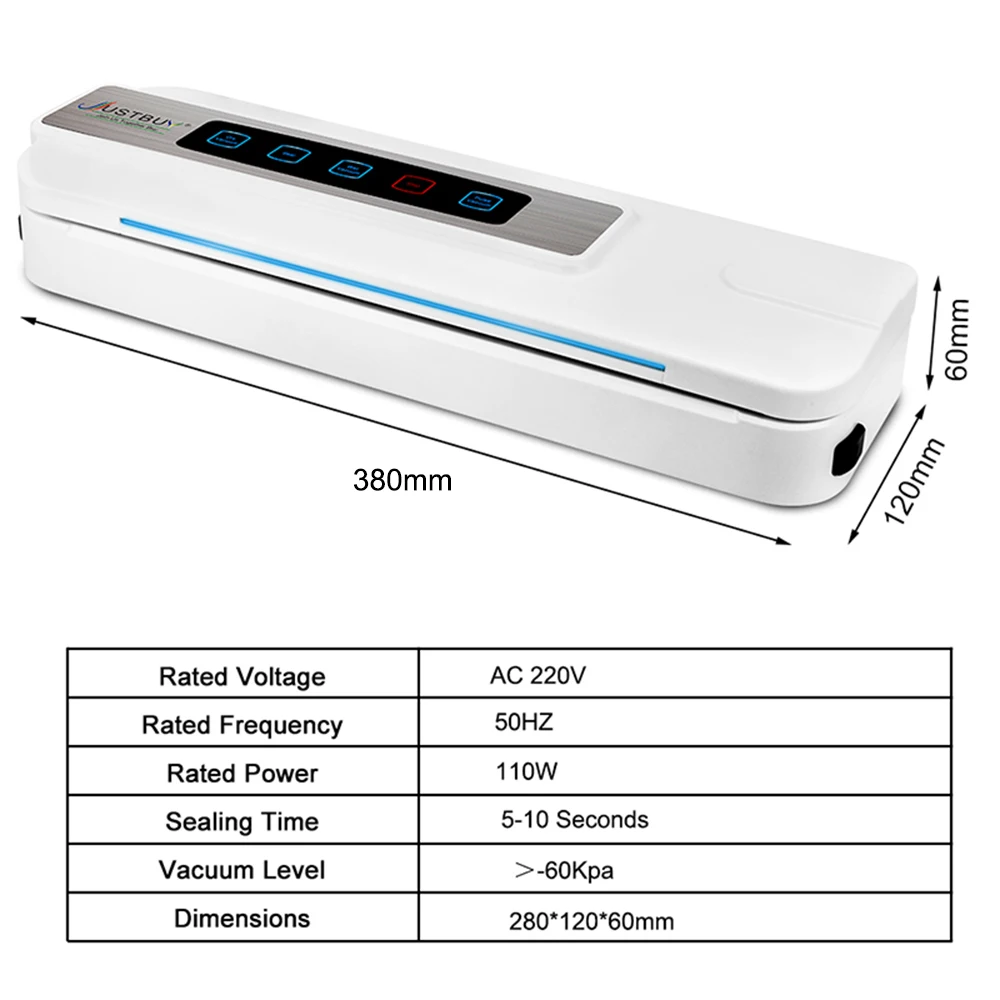 * С полным сенсорным экраном управления, непосредственно на сенсорный ЖК-экранВыберите желаемую функцию* С индикатором рабочего состояния, запуск работы, работа, завершение работы.* С резцом, более удобным в использовании и более интимнымАвтоматический вакуумный упаковщик, вакуумная воздушная упаковочная машина для сохранения пищевых продуктов, сухих, влажных, мягких пищевых продуктовПодходит для небольших коммерческих, бытовых, полностью автоматических типов, мощных, высоких вакуумов, является экономически эффективной вакуумной упаковочной машинойПараметры продукта:Номинальное напряжение: 110-220 В переменного токаНоминальная мощность: 110 ВтНоминальная частота: 50 Гц/60 ГцВремя запечатывания: 6-10 секМаксимальная ширина уплотнения: 28-30 смДвигатель: сильный бесщеточный моторРабочее Описание: полностью автоматическое и ручноеТепловой предохранитель: нагревательный провод из никелевого хромового сплаваВысокотемпературная клейкая лента: термостойкая тефлоновая aive бумагаМатериал корпуса: экологический АБС-пластикПосылка включает в себя:1 * вакуумная упаковочная машина1 * Вакуумные соломинки1 * Руководство пользователя (на английском языке)1 * резак для сумки--------------- Покупатель читает ------------