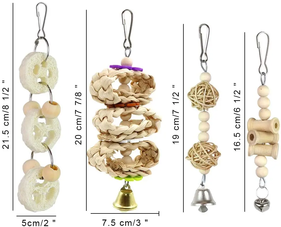 🐦Различные виды игрушек для птиц: посылка включает в себя 8 различных детских игрушек для птиц, таких как деревянные спиральные лестницы, колокольчики, подставные игрушки для удовлетворения потребностей вашей любимой птицы, развлекательные игрушки расположены в нескольких слоях, чтобы лазить, жевать и исследовать. Птицы полюбят прыгать от игрушки до игрушки, получая упражнения. 🐦100% нетоксичный материал: Изготовлен из 100% натурального древесного материала, хлопчатобумажной нити, очень безопасен для укусов птиц, для жевания. Полностью Изготовленный вручную материал для домашних животных, создающий безопасность, защиту окружающей среды для ваших коктейлей, макарусов, конусов, лавок, боди, любимых птиц. 🐦Идеальный дизайн для птиц: эти игрушки для птиц предназначены для того, чтобы ноги вашей птицы отдыхали, а также предлагают возможности для упражнений для ваших птиц, чтобы сохранить здоровье и форму, сделать упражнения для птиц и укрепить их мышцы, добавьте жизненную силу. 🐦Легко установить: все аксессуары для клетки для попугаев поставляются с активным крючком, который просто прикрепляется к верхней части клетки для домашних животных для легкой установки. Он может быть легко установлен практически в любой клетке и может обеспечить часы веселья каждый день. 🐦Подарки: набор включает в себя различные виды игрушек для птиц, такие как подставка, жевание и т. д. он отвечает различным потребностям птиц и является идеальным подарком для домашних птиц. Подходит для Дня благодарения, Рождества и многого другого.