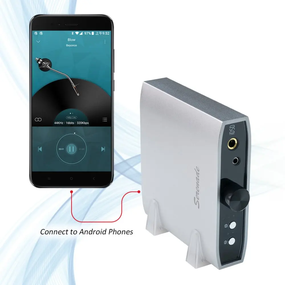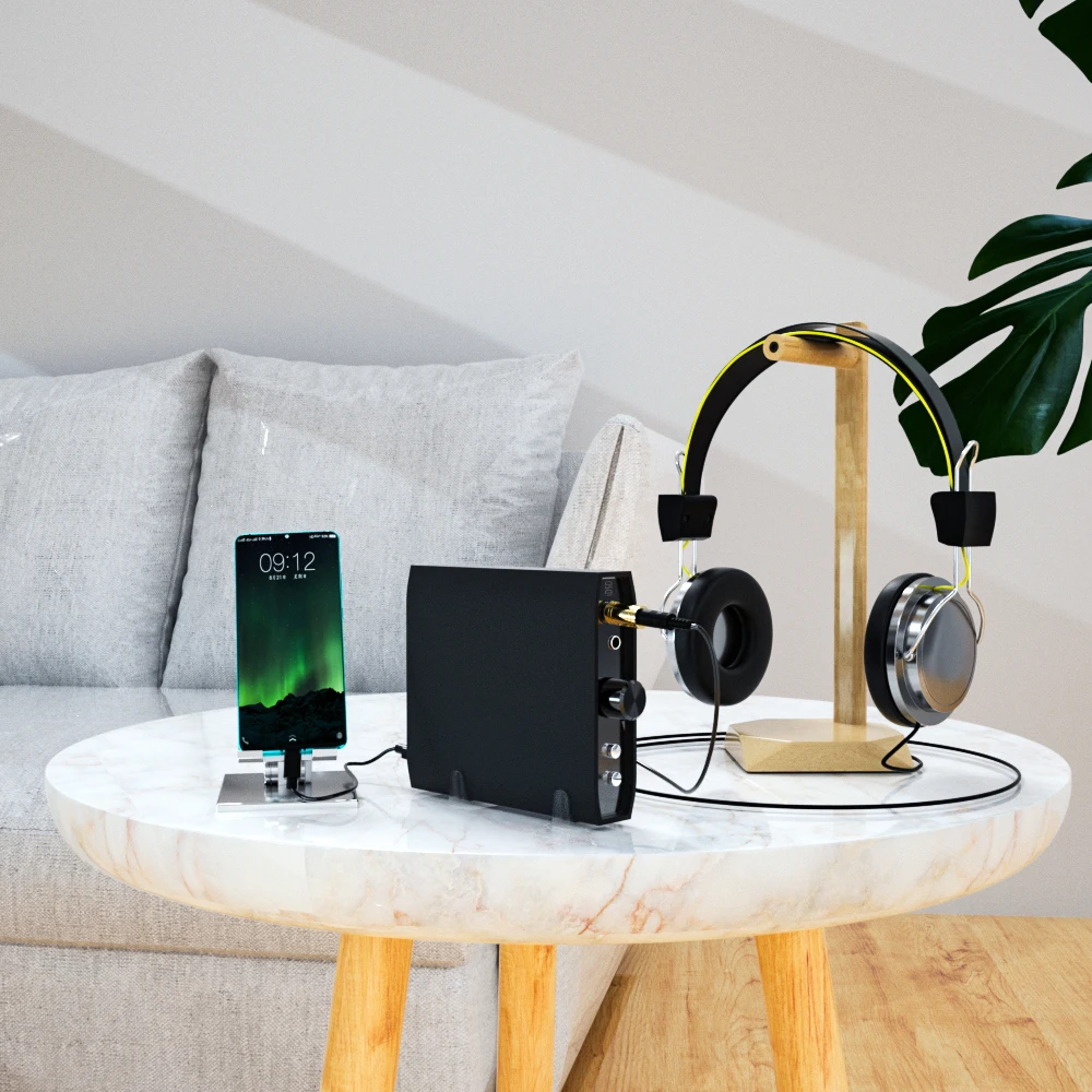 ПК/Мобильный телефон USB D/A конвертер Поддержка мобильных телефонов и ПК Поддержка DSD native и DSD DoP Усилитель для наушников поддерживает от 16-300Ω ASIO USB асинхронный драйвер для окна