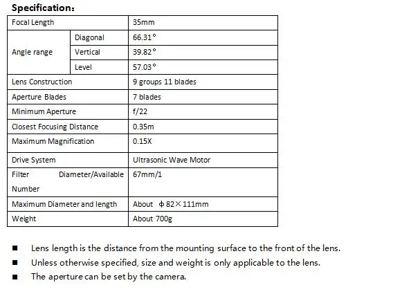 YONGNUO YN35mm F1.4C DF UWM Ультразвуковой объектив AF -- YONGNUO YN35mm F1.4C DF UWM Øоснащен ультразвуковым волновым двигателем Оснащен ультразвуковым волновым двигателем, который делает фокусировку более быстрой, точной и тихой. ØElectronic Focus Ring Электронное кольцо фокусировки, в сочетании с соответствующим демпфированием, позволяет наслаждаться светильник, высокой точности ручной фокусировки, не теряя нежность. ØF1.4 яркая диафрагма Bokeh можно легко получить на высокий светильник эффект объекта, в условиях низкий светильник, вы также можете использовать низкую чувствительность и более высокую скорость затвора для съемки. Асферические линзы Оснащен 2 асферическими линзами, которые могут эффективно компенсировать различные аберрации. Эаномальный дисперсионный объектив Принимает 2 части аномальных дисперсионных линз, которые не только эффективно подавляют дисперсионные линзы, но и улучшают вторичный спектр. ØGlass оптические линзы, многослойное покрытие Целую серию этот продукт принимает стеклянные оптические линзы и многослойное покрытие технологии для эффективного увеличения светильник с высоким коэффициентом пропускания и управление обратно светильник призрак изображения и блики. Обновление прошивки ØUSB Оснащен usb-портом. Вы можете скачать последнюю прошивку с официального сайта YONGNUO и обновить объектив. ØLive View фокусировка (Lv) Включите просмотр в режиме реального времени, вы можете просмотреть тему через монитор камеры, вам легко фокусироваться под особым углом. Ø7 шт. лезвий диафрагмы Принимает 7 шт. лепестков диафрагмы, который помогает сфотографировать круговой defocused пятна, а также 14-звезды эффект в том случае, если вы остановите вниз проем оптическим стеклом. Øпозолоченный контакт, металлическое Крепление Этот объектив оснащен позолоченным контактом и высокоточным хромированным металлическим креплением, что эффективно повышает проводимость сигнала, коррозионную стойкость и долговечность. Øподдерживает режимы AF Quick (AF) и ручной фокусировки (MF). Поддерживает автофокус и ручной фокус, вы можете выбрать режим фокусировки в соответствии с вашим собственным Потребности в съемке. ØFocus индикатор расстояния Этот объектив Оснащен индикатором расстояния фокусировки, что позволяет вам легче оценить расстояние объекта и использовать ручной фокус.