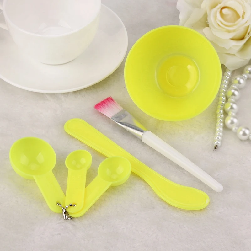 4 в 1 Diy маска для лица щетка и чашка для смешивания ложка палочка щетка набор для ухода за лицом женщины красота лица профессиональные наборы Инструменты (желтый)