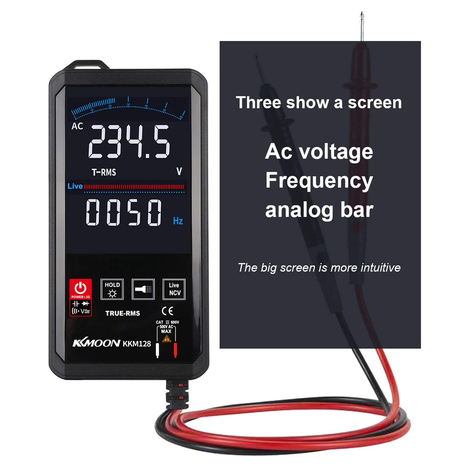 Функция: тест на напряжение, Частотный тест, тест на емкость, тест на сопротивление, диодный тест, распознавание пожарного провода, фонарик, электрическое поле, звуковой сигнал, истинный RMS, автоматическое отключение, хранение данных.