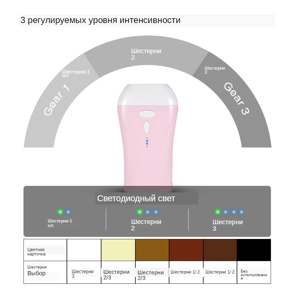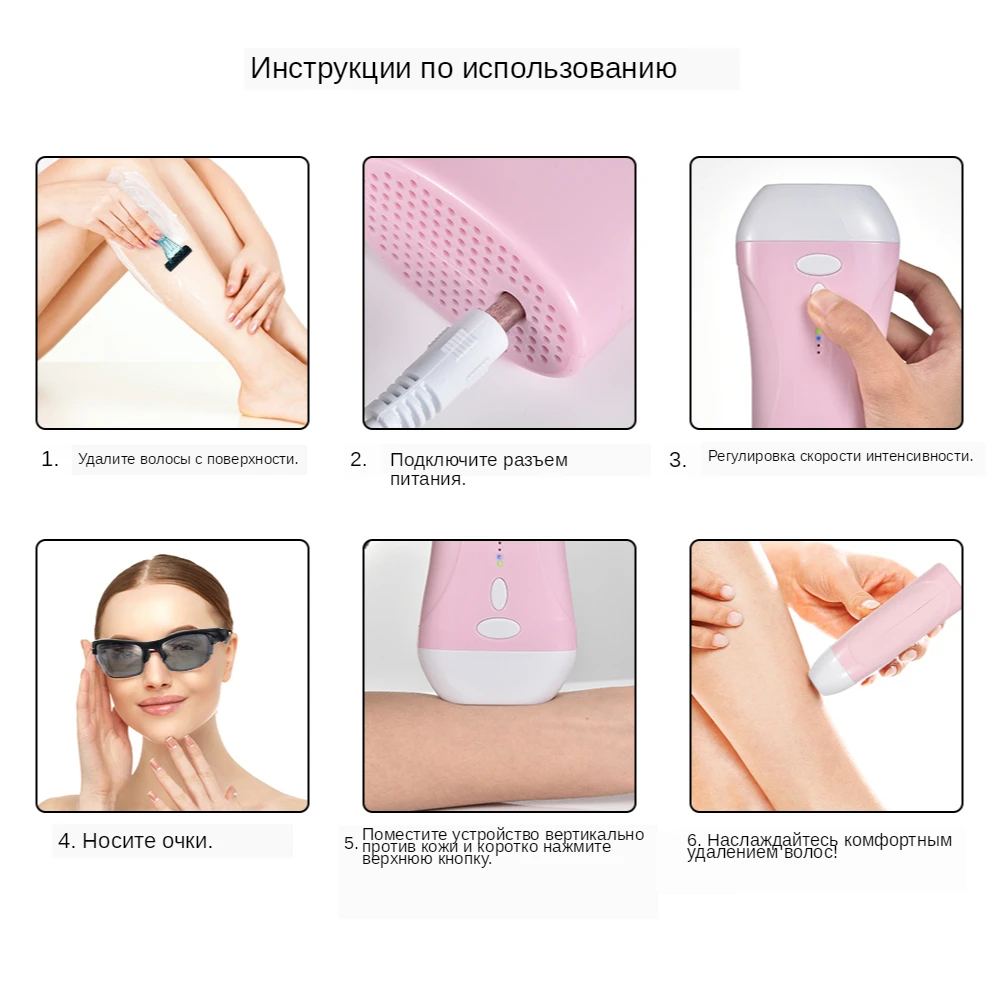 990000 профессиональный IPL лазерный инструмент для удаления волос безболезненный постоянный Электрический эпилятор импульсный светильник устройство 3 регулируемых уровня интенсивности машина для удаления волос Особенности 1. Используйте технологию IPL (интенсивный импульсный светильник) для эффективного и мгновенного удаления волос, достаточно мягко, чтобы избежать аллергии или боли на вашей коже, мощный и долговечный, чтобы мигать до 990000 раз. 2. Три уровня интенсивности регулируемый светильник широко подходит для различных типов кожи, может использоваться для удаления волосков ног, рук, подмышек, области бикини, груди, спины, подбородка и так далее. 3. Высококачественный корпус из АБС-пластика и бесшовный светильник без протечек, что обеспечивает повышенную безопасность применения. 4. Перезаряжаемый дизайн USB, вы можете использовать после полной зарядки или использовать его во время зарядки с помощью usb-кабеля одновременно для непрерывного удовольствия. Технические характеристики Технология: Интенсивный Импульсный светильник (IPL) Материал: пластик Цвет корпуса: розовый Тип штепсельной вилки: штепсельная вилка стандарта США/штепсельная вилка европейского стандарта (опционально) Уровень интенсивности светильника: 3 уровня Пульс: 990000 шт Номинальный входной источник питания: DC 12V 3A Максимальная входная мощность: 36 Вт Напряжение: AC100-240V, 50/60 Гц Метод электропитания: подключаемый Длина волны: 580-1200нм Светильник с волнистым покрытием Размер: 3*1 см (3 см2) Размер: как на картинке Посылка включает в себя: 1 * Основной блок 1 * Разъем питания 1 * бритва 1 пара * очков 1 * Руководство пользователя