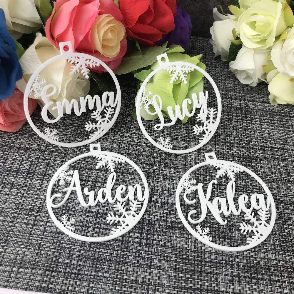 Персонализированные рождественские безделушки подарочные бирки на заказ Рождественские снежинки орнамент шар деревянные украшения шар