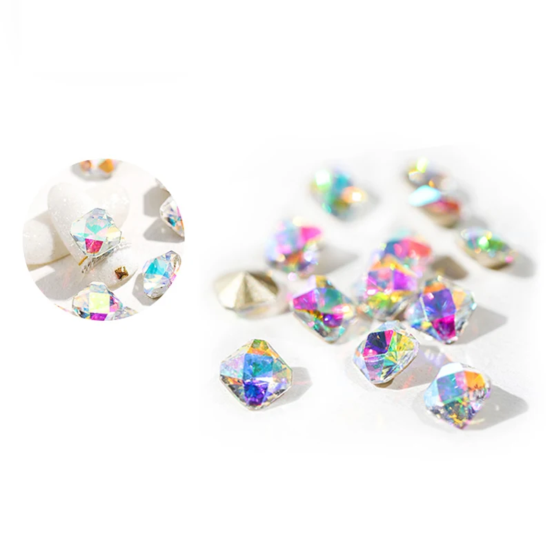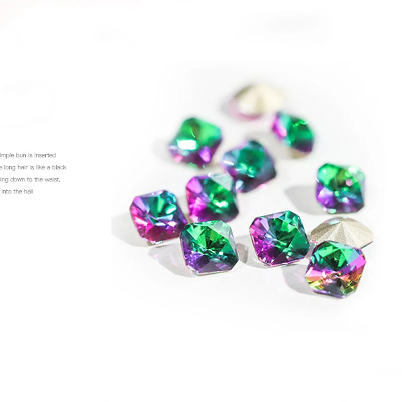 Восьмиугольные элементы, блестящие золотые тени, хрустальные стразы, стеклянные точечные элементы, дизайн для ногтей, сделай сам, искусство для ногтей, поделки, камни Размеры: 10x10mm Цвет: Золотая тень вулкан кристалл AB Форма:Восьмиугольный Материал: Хрустальный кристалл K9 Тип: pointback DIY хрустальные камни аксессуары для драгоценных камней Техника: Держатель для приклеивания Тип товара: бусины для одеждыПодробное описание продукта Особенности
