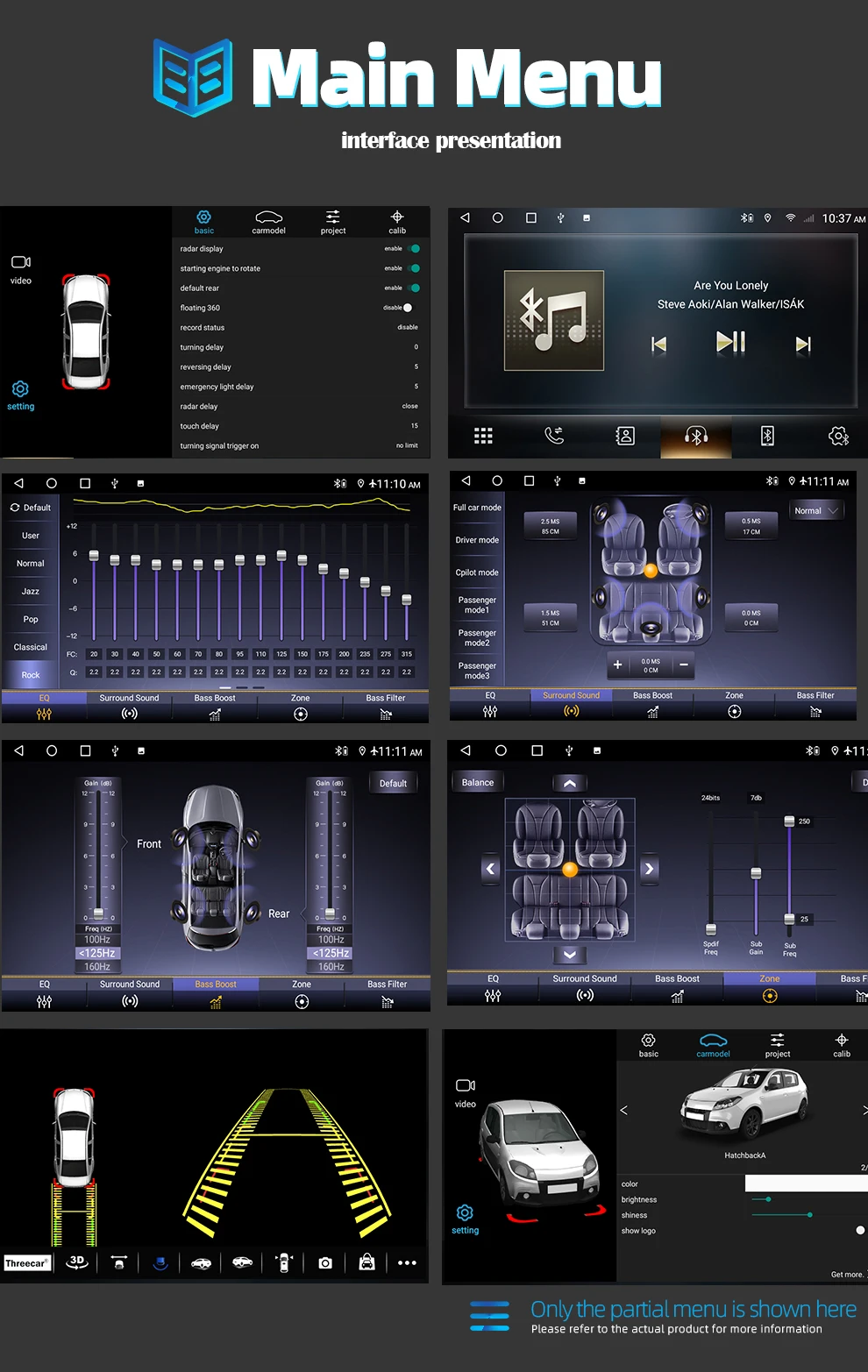 2.5D емкостный Экран + 4 Core 1,2/1,8 ГГц Процессор + DDR3 1 Гб (2 ГБ/4 Гб опционально) Flash + 16 Гб памяти (32GB/64GB опционально) + встроенный Wifi + DSP (опция) + gps-навигация + управление рулевым колесом + Зеркальная связь + Bluetooth + Встроенный микрофон + FM(AM + RDS опция) + Поддержка функции USB DVR + Европейская функция DAB + 1080P Vedio Play + HD 1024*600 + контроль давления в шинах Система