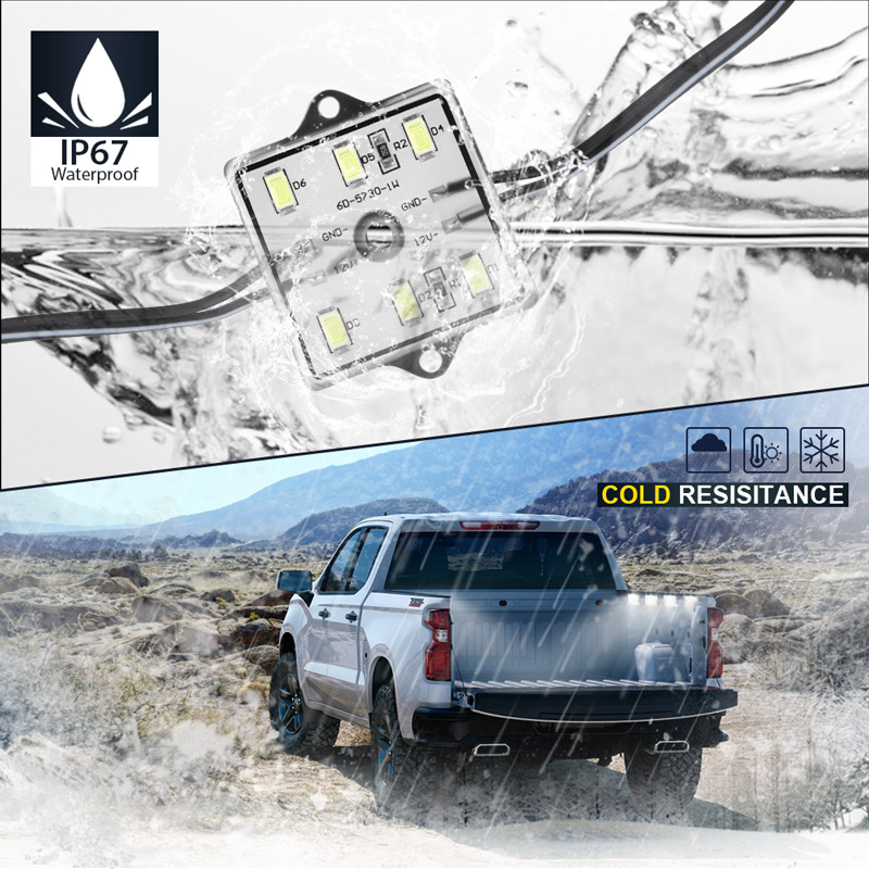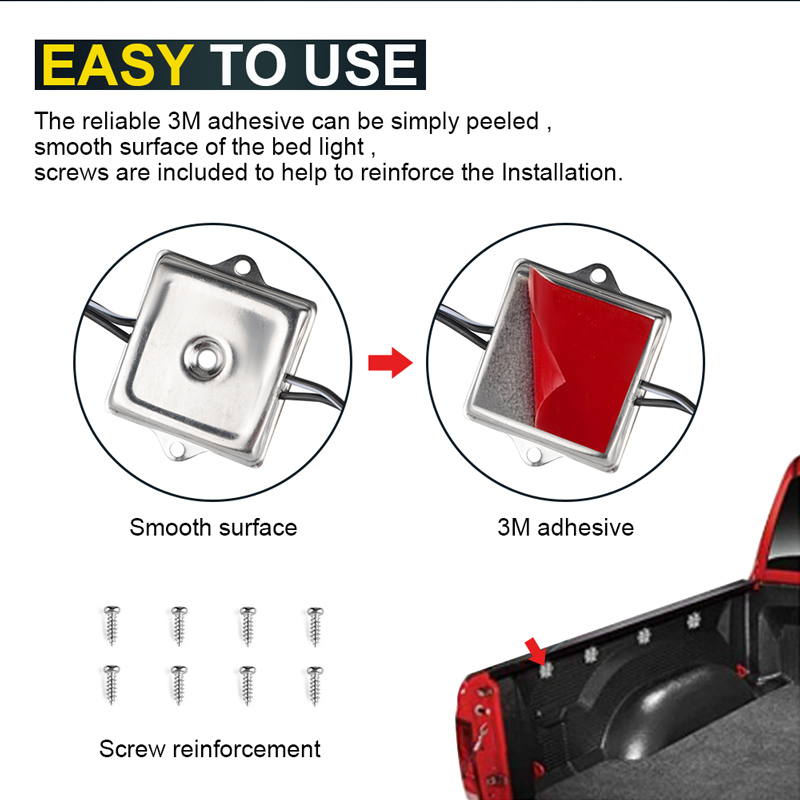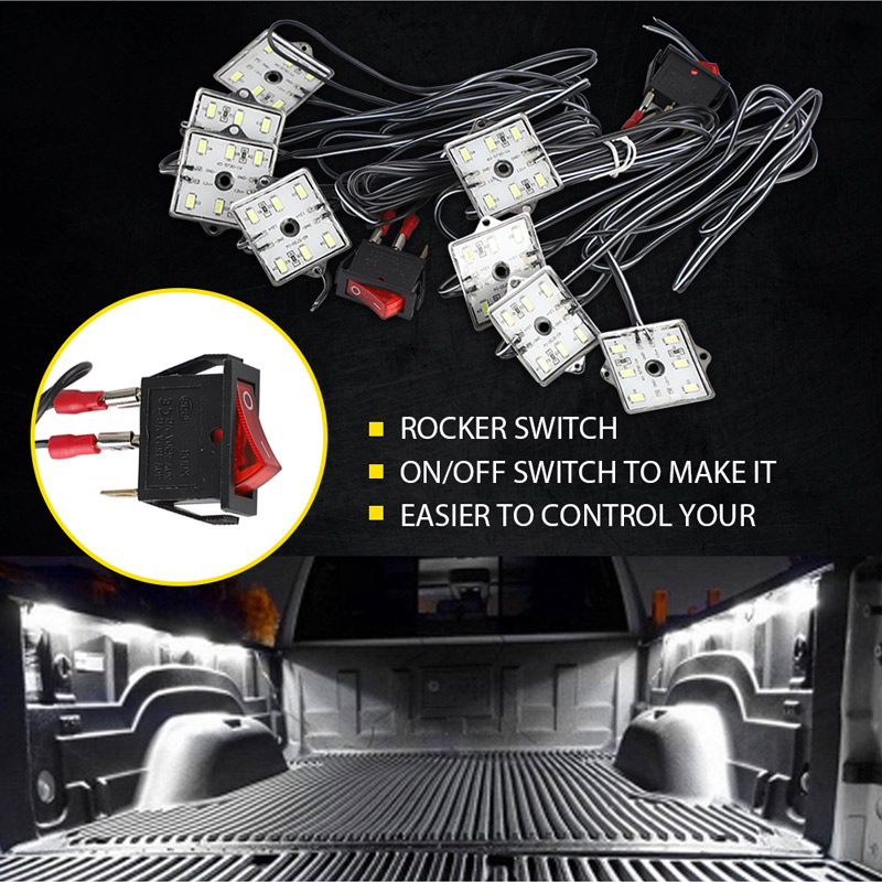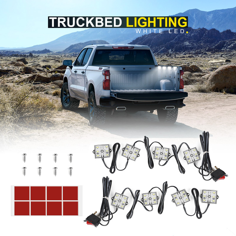 Описание: 8 шт. светодиодный светильник для кровати грузовика освещает всю кровать вашего грузовика с откидной крышкой выключателя, позволяет работать после наступления темноты без необходимости держать светильник вспышки или подключить портативный Рабочий светильник. Этот светильник для кровати грузовика включает в себя две отдельные нити 4 штатива-светильник с 6 светодиодами на стручке, которые дают вам в общей сложности 8 стручков и 48 ультра-ярких белых смарт-технических светодиодов. Каждый 1,4 дюймов квадратные кузов пикапа освещения pod является 100% водонепроницаемый и только. 20 дюймов толщиной, что делает их чрезвычайно легко спрятать, в отличие от соревнований, в которых используется большой стручок, который может висеть под поручнями. Каждый подвесной светильник включает в себя 23 дюйма провода между каждой стручкой и имеет 21 фут провода питания, дает вам много длины, когда дело доходит до запуска проводов питания в кабину и включенного/выключенного выключателя. Каждый стручок легко монтируется под поручнями с помощью либо прилагаемой самоклеющейся ленты, либо винтов. Спецификация: Две нити 4 светодиодный осветительные стручки для грузовиков Всего 8 стручков и 48 ультра-яркие белые светодиоды для монтажа на поверхность Стручки 1,4 дюйма x 1,4 дюйма Полностью водонепроницаемый Простой в использовании Переключатель ВКЛ/ВЫКЛ 21 фут провода питания на прядь 23 дюйма провода между каждой стручкой Монтажное оборудование