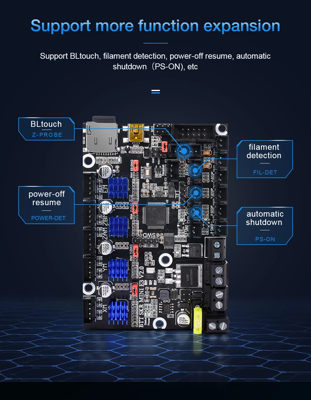 Более подробно о SKR MINI E3 V2.0 вы можете посетить этот веб-сайт://github.com/bigtreetech/BIGTREETECH-SKR-mini-E3/tree/master/hardware/BTT%20SKR%20MINI%20E3%20V2.0?spm=a2g0o.detail.1000023.17.4ba07e632gOv5q&file=BTT%20SKR%20MINI%20E3%20V2.0