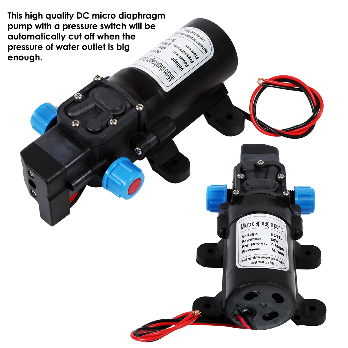 Этот высококачественный мембранный насос постоянного тока с переключателем давления автоматически отключается, когда давление воды достаточно велико. И работает снова, когда давление опускается. Это не хорошая идея, чтобы этот насос слишком долго промокал. Этот тип продукта может быть применен в случаях, которые требуют экономии энергии и частого переключения, таких как машинная стирка, подача воды в солнечную энергетическую систему, И дистанционная автоматическая система управления подачей воды и приостановкой водоснабжения и т. д.