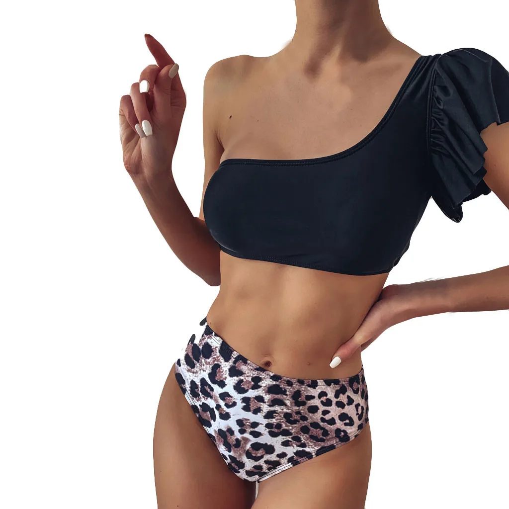 Женский купальник, новинка 2020, модный Леопардовый принт, высокая талия, бюстгальтер, купальник с открытыми плечами, танкини, бикини, купальный костюм для женщин 4