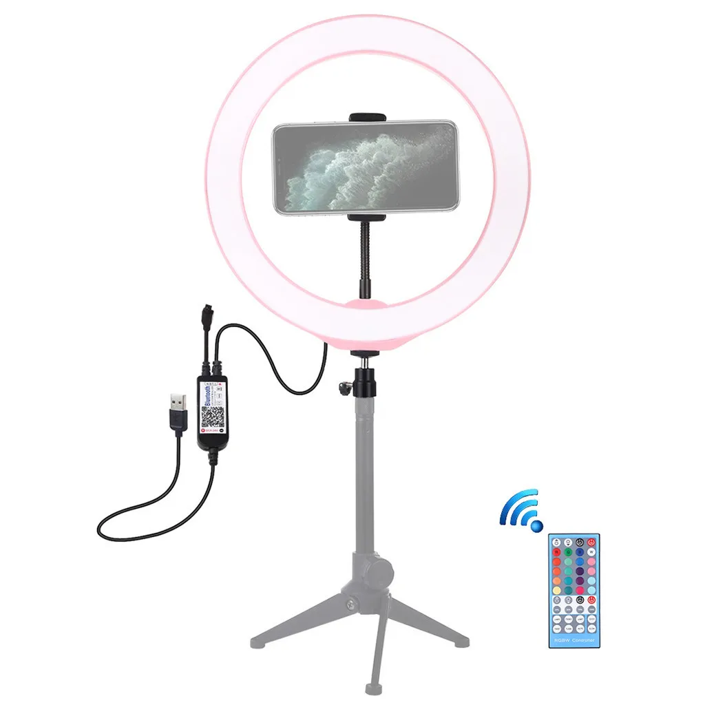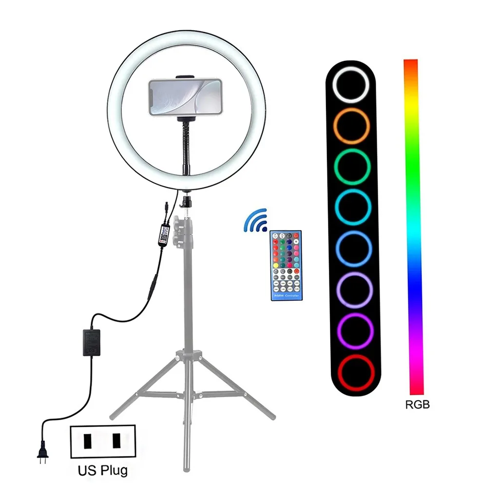 Кольцевой светильник 9 с подставкой для телефона, 8 режимов, светодиодный светильник RGB