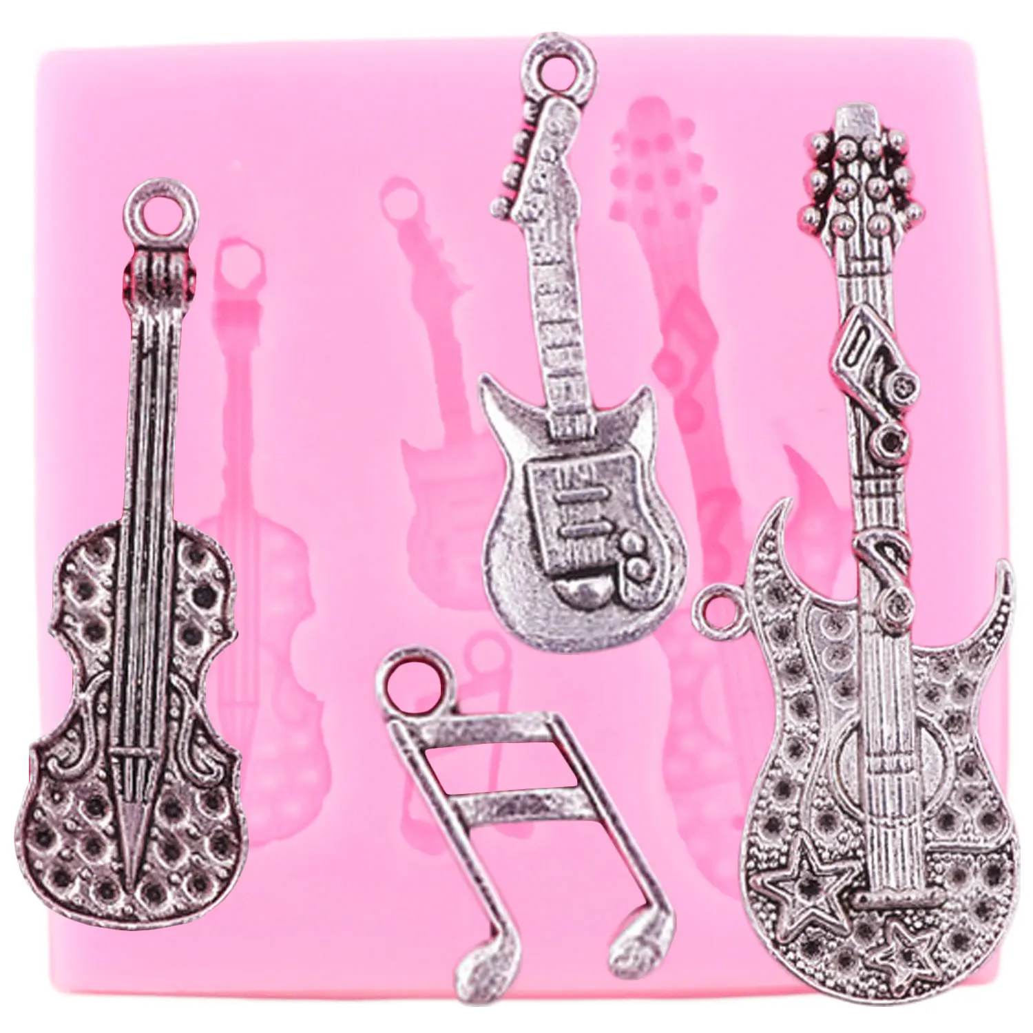 Акустическая электрическая гитара скрипка музыкальная силиконовая форма для ключей DIY Изготовление ювелирных изделий блестящая эпоксидная силиконовая смола форма