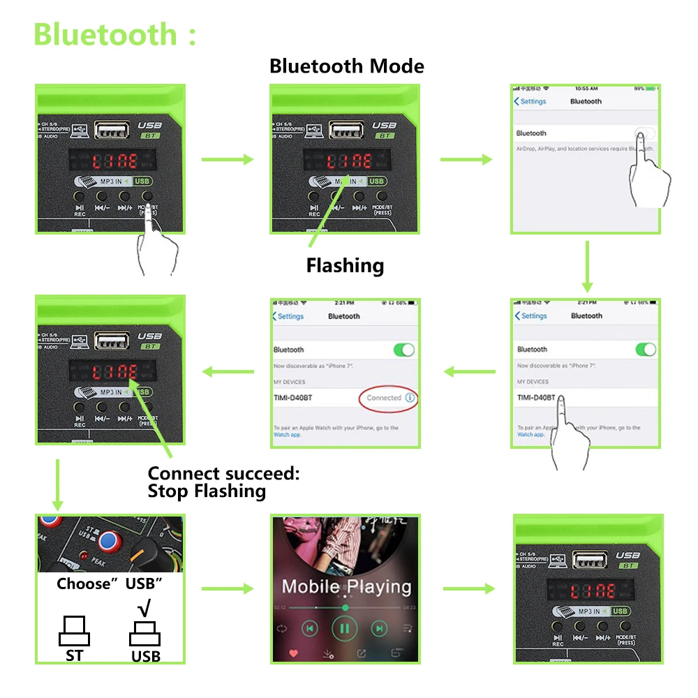 2.Миксер оснащен входным усилением, высокой и низкой регулировкой звука. Встроенный фантомный блок питания 48 В подходит для питания конденсаторного микрофона напрямую. Выход гарнитуры высокой четкости Порт, mp3-плеер, со звуковой картой. Может работать с помощью usb-подключения к компьютеру.