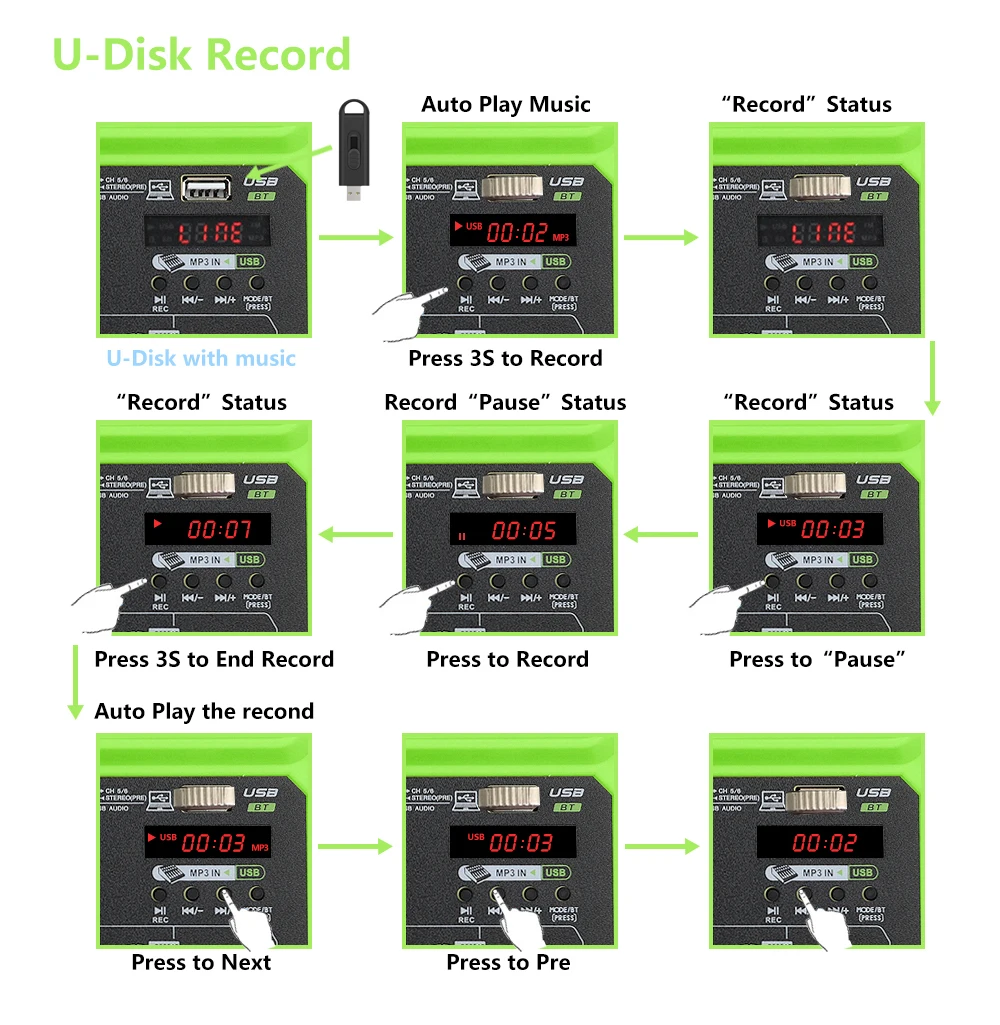 -Функциональные клавиши MP3 для фиксации линии/BT/PC рабочий статус и режим циклического воспроизведения