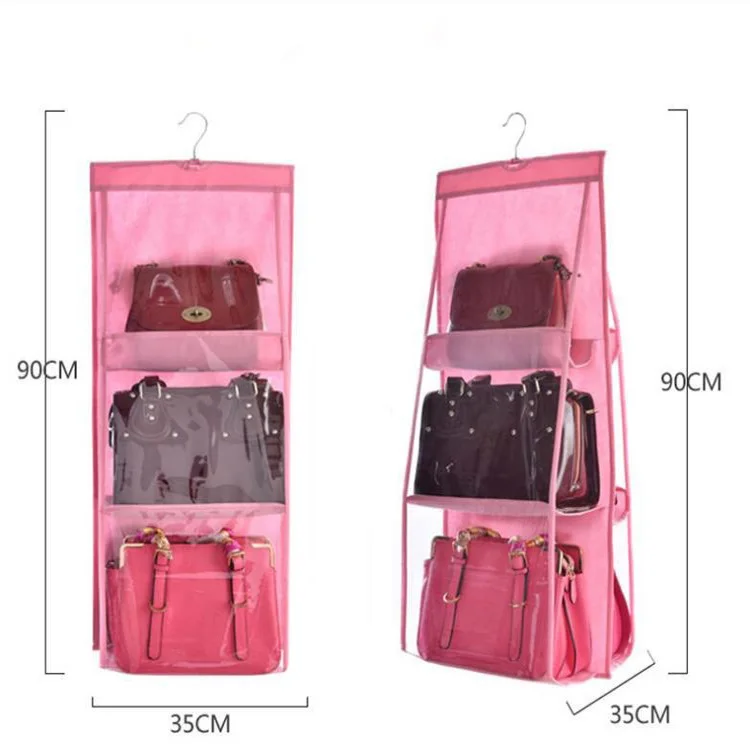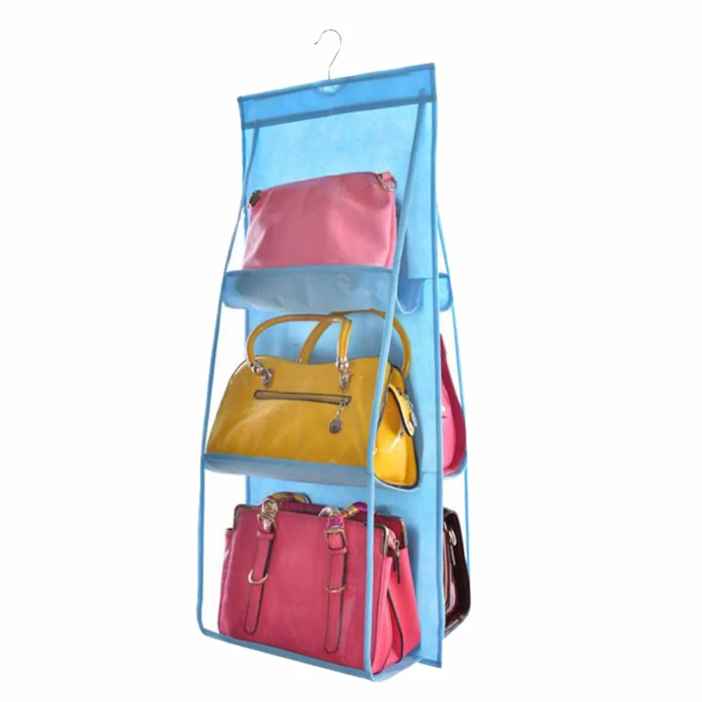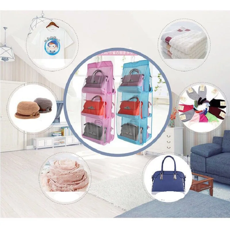 6 карманных висячих органайзеров, кошелек, прозрачный, 3 слоя, двухсторонняя складная сумка для хранения, органайзер для шкафа, гардероба