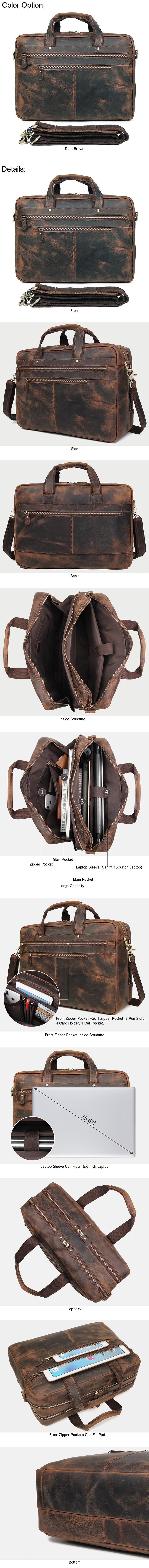 Особенности: -Он был сделан из отборной кожи Crazy Horse с натуральным лицевым покрытием. -Стильный и особенный -Большой объем для повседневного использования -Может включать 15,6 "ноутбук, коврик, А4 Размер документа и т. Д. -Прибл. Размер 43 см (Д) х 30,5 см (В) х 16,5 см (Ш)