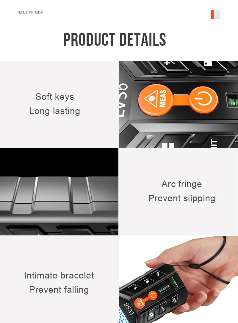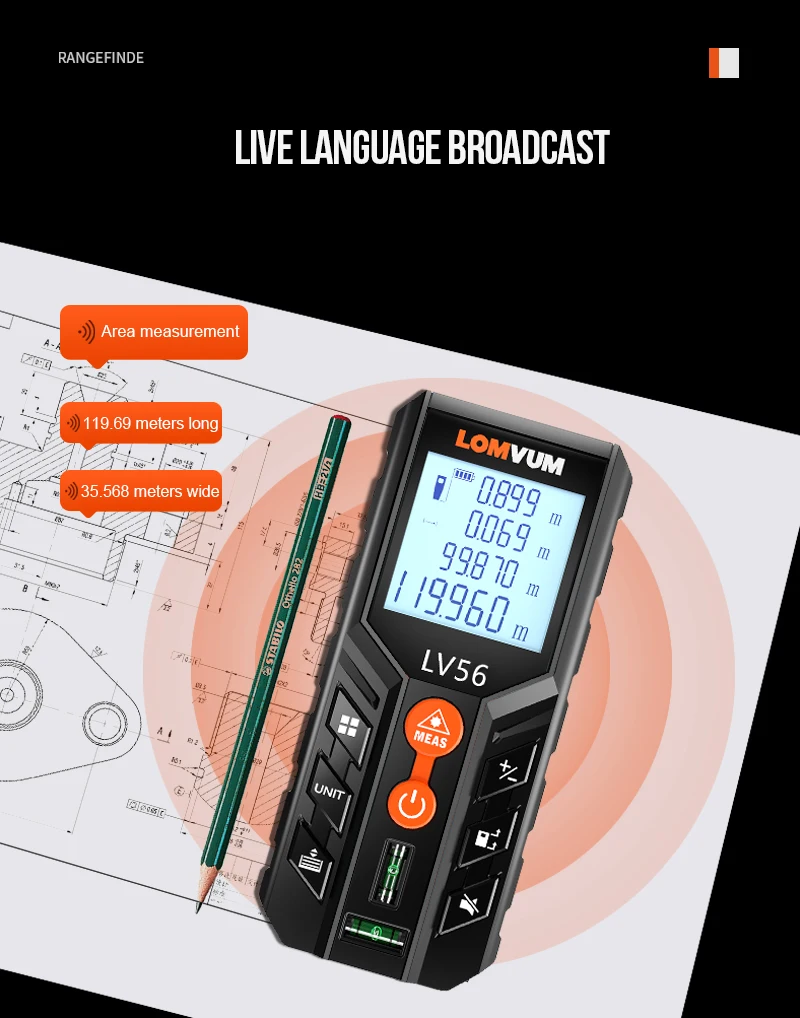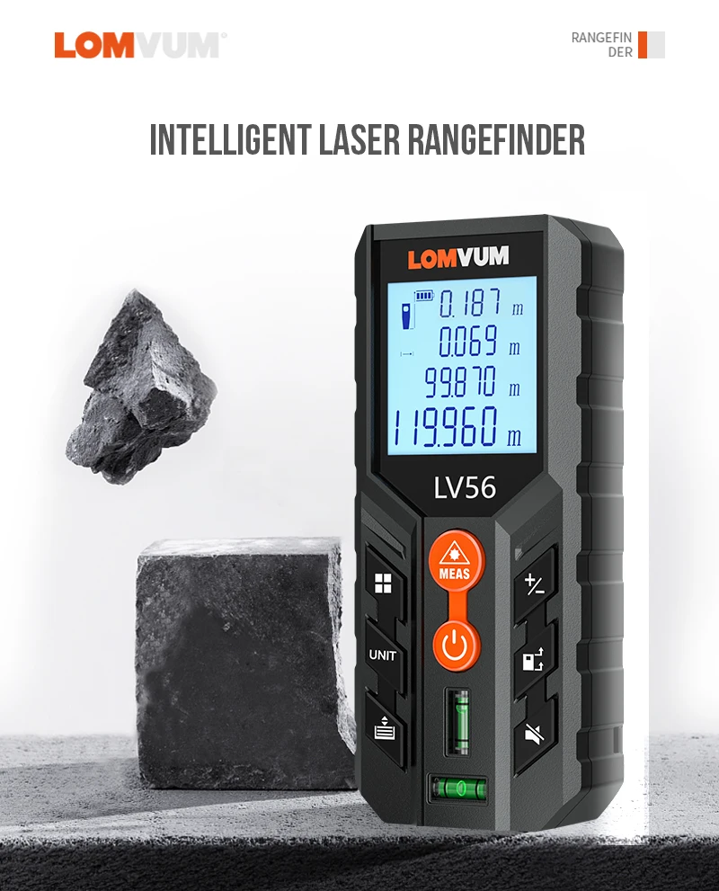 Спасибо за покупку и использование лазерного измерения LOMVUM. Пожалуйста, внимательно прочитайте руководство пользователя перед использованием. Портативные лазерные измерения серии LOMVUM LV56U профессионально используются в инженерных измерениях. Стабильная и надежная производительность и простота в эксплуатации не требуют участия многих людей, что значительно экономит затраты на работу. Он широко используется в различных отраслях промышленности, таким образом, лазерное Измерение серии LUMVUM LV56U становится классикой в своей области. Лазерный прибор LOMVUM хорошо спроектирован и изготовлен всемирно известным дизайнером. Он выглядит как бриллиант с жестким корпусом и уникальным противоскользящим дизайном. С высокой рабочей производительностью и конкурентоспособной производительностью, лазерное Измерение серии LV56U также имеет различные функции измерения, включая непрерывное измерение, измерение площади, измерение объема, измерение по пифагору и т. д., которые удовлетворят потребности большинства людей в измерениях и приносят качественный опыт измерений.