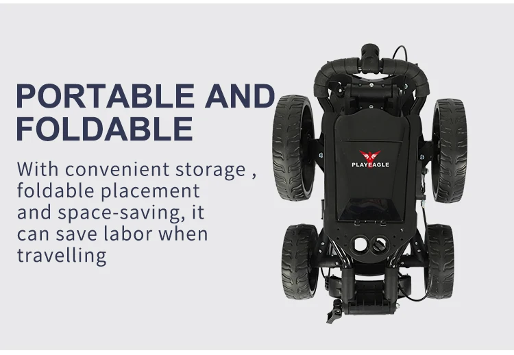 4 колеса, тележка для гольфа, легко складывается, Черный алюминиевый сплав, с держателем зонта, PLAYEAGLE, тележка для гольфа, 4-колесная тележка