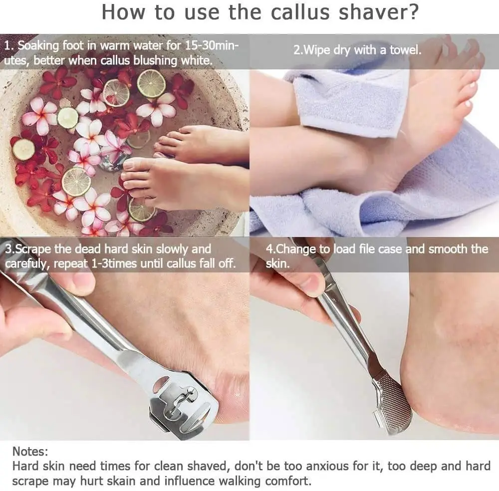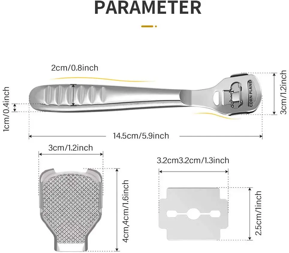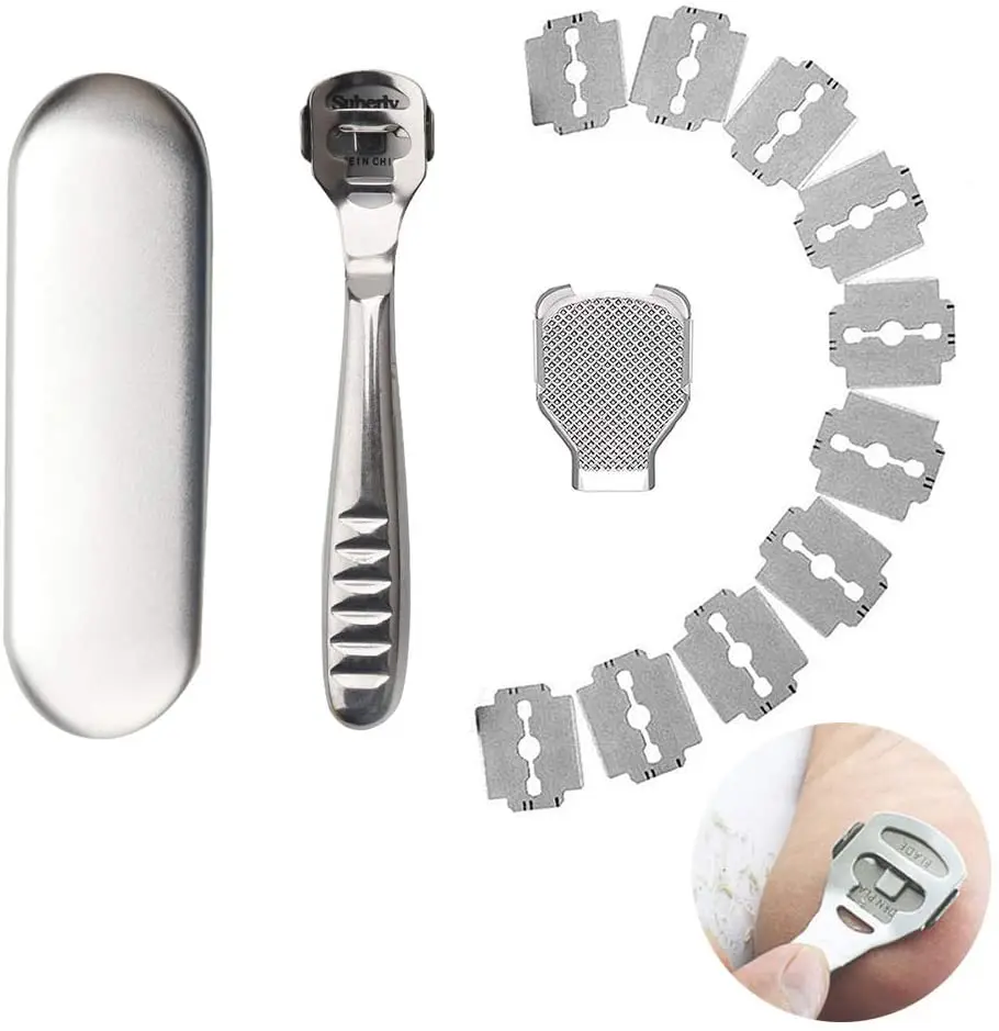 1. Профессиональный педикюрный инструмент изготовлен из полированной нержавеющей стали, не ржавеет, не деформируется. Уникальная Нескользящая ручка, удобная ручка и плавное управление для использования, чтобы обеспечить вам деликатный и качественный уход за ногами в салоне. 2. Устройство для удаления мозолей включает в себя портативную коробку из нержавеющей стали, которая позволяет вам ухаживать за ногами или руками в любом месте в любое время, например, в путешествиях или деловых поездках, даже в повседневной работе. Используйте его для ухода за ногами или руками в вашем доме, удобно в любое время! 3. Бритва мозолей спроектирована со съемной головкой, очень удобно менять лезвие или загружать головку. Очень удобно заменить многоразовые лезвия и чехол для ног после того, как лезвие станет тусклым. Поставляются вместе с 10 сменными лезвиями и 1 насадкой для ног для длительного использования. 4. Профессиональный педикюрный Уход за ногами прост в использовании для педикюра, кукурузной бритвы, жесткой омертвевшей кожи, скребка для мозолей пятки и т. д., омолаживает гладкую кожу ног и рук, не стесняет ваших ног больше! Это хороший подарок для пожилых женщин и мужчин, любителей бегунов!