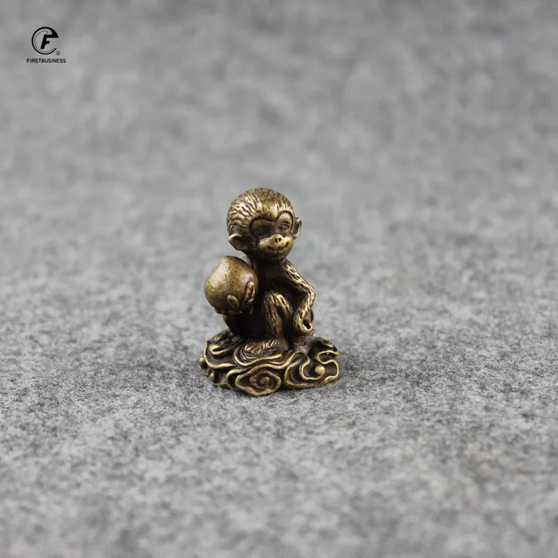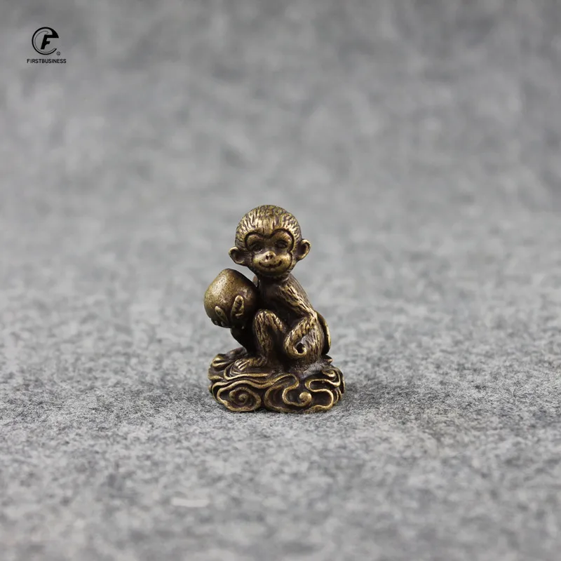 Отзывы о Винтажная медная обезьяна Персиковое настольное украшение Твердые Латунные фигурки животных обезьяны